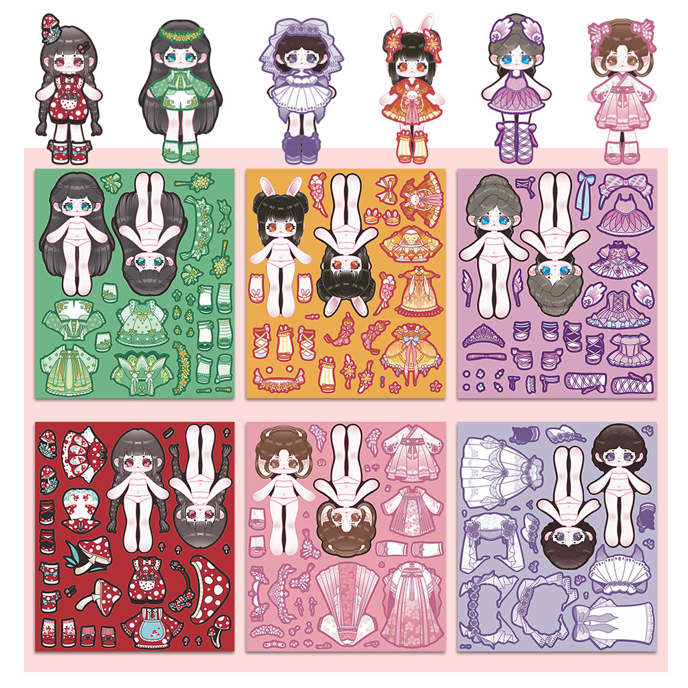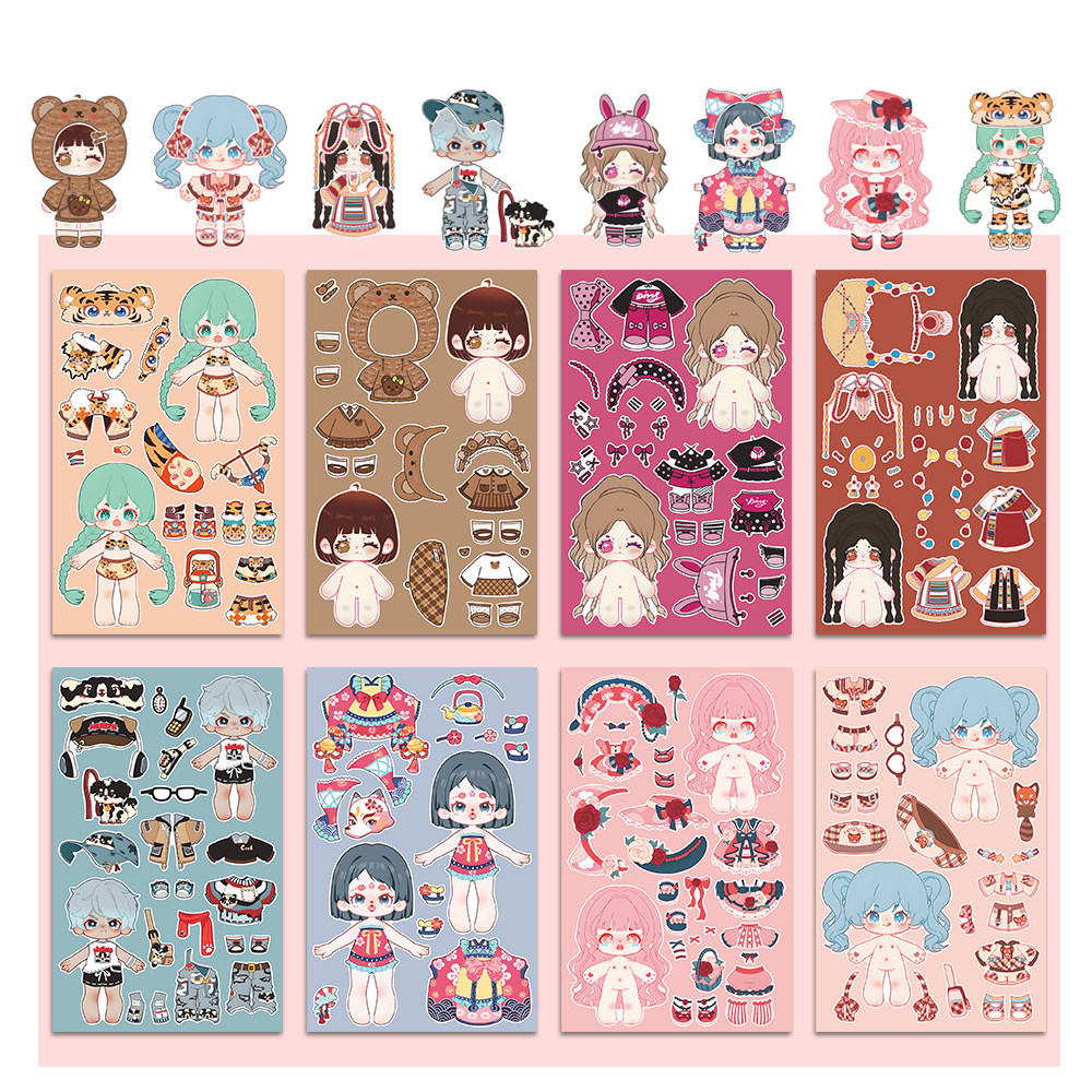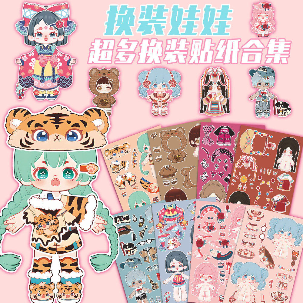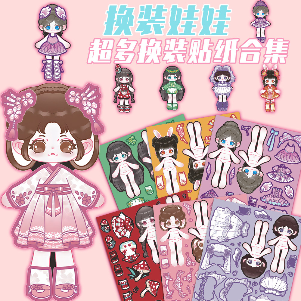 全系列换装棉花娃娃贴纸女孩换装搭换装益智动手动脑免裁剪贴画
