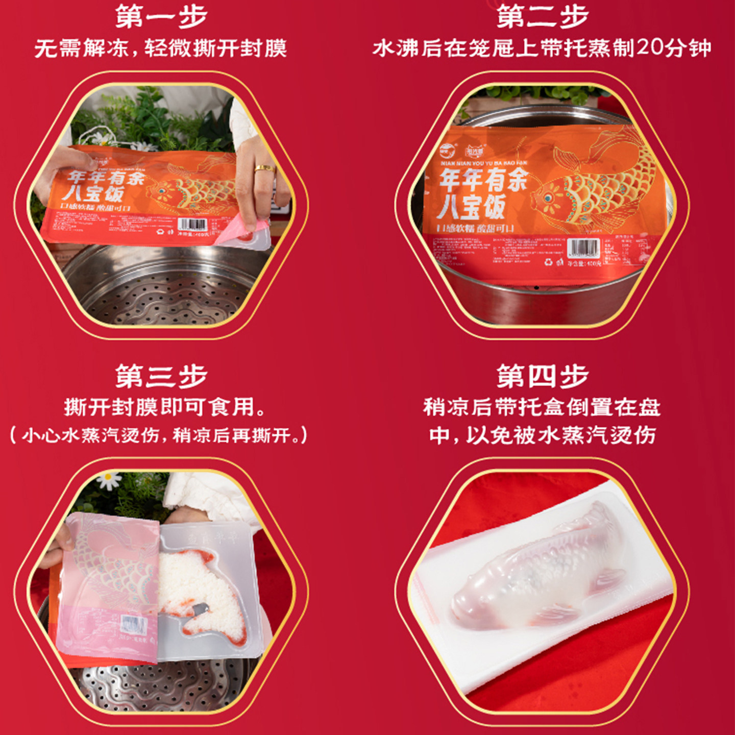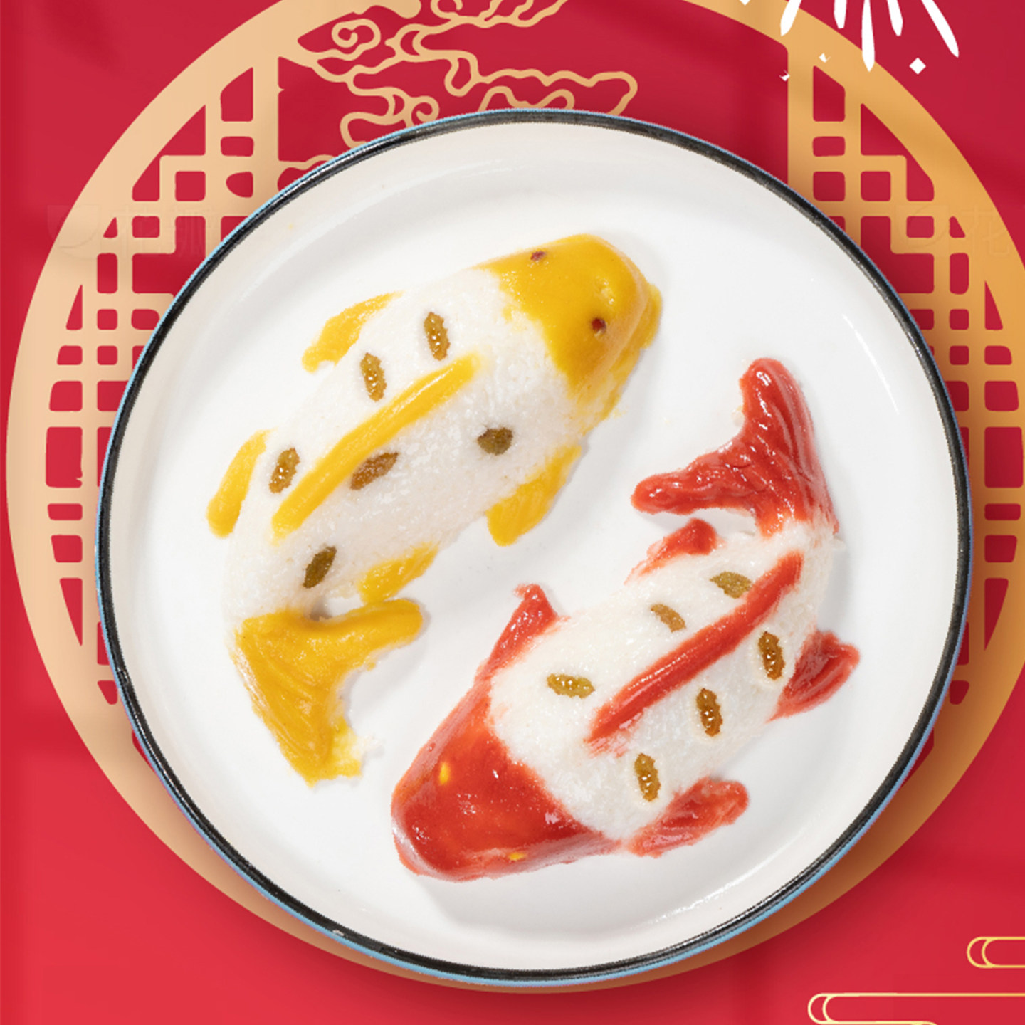 宝饭年糕鱼山楂鱼山楂糕糍粑年夜饭摆盘糯米饭年年有鱼清真八宝