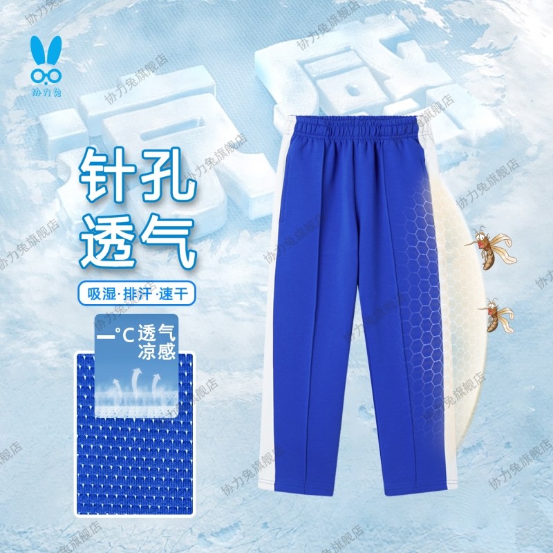 协力兔深圳校服小学生夏季男女薄款针孔网眼速干长裤防蚊裤冰丝裤