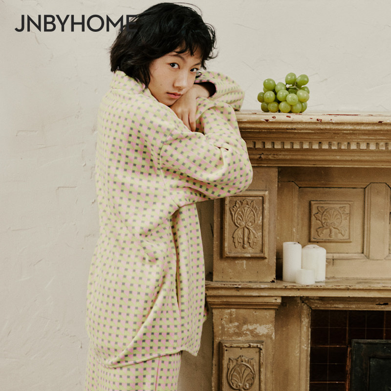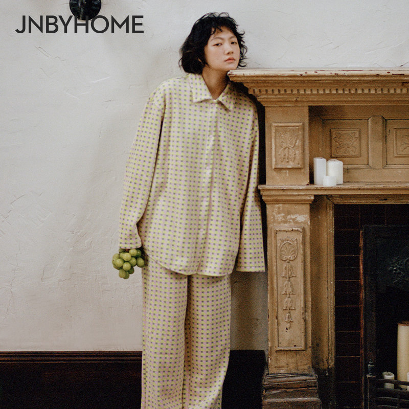JNBYHOME江南布衣冬家居服可外穿长袖加厚女格纹套装舒适睡衣
