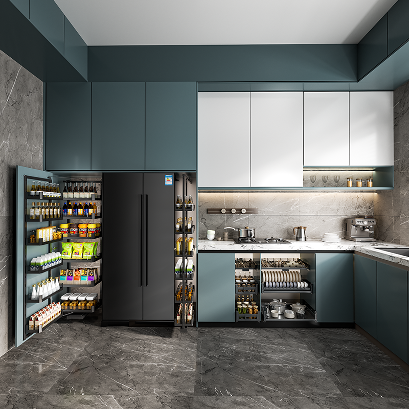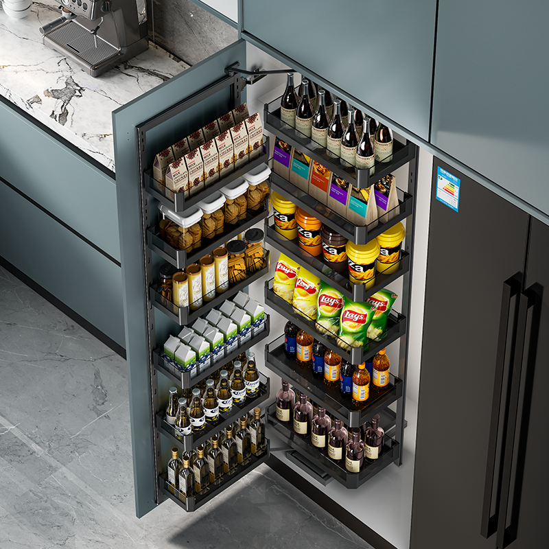 大怪物高柜联动拉篮零食柜橱柜厨房收纳柜多种铝合金抽拉柜门碗碟
