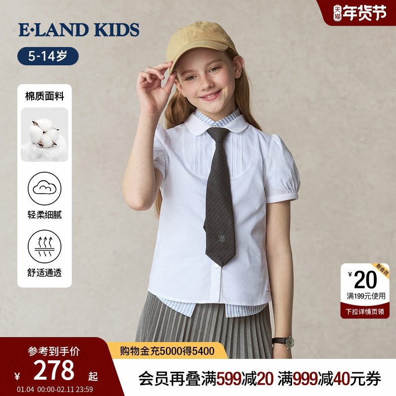 eland kids衣恋童装女童衬衫25年夏季新品清新娃娃领微喇袖口短袖