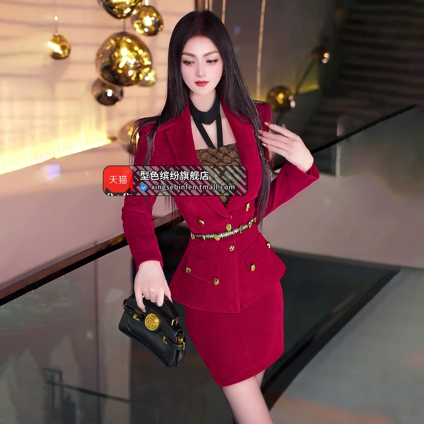 冬季欧美洋气女神范绒感上衣半裙两件套2025新款减龄辣妹风套装裙