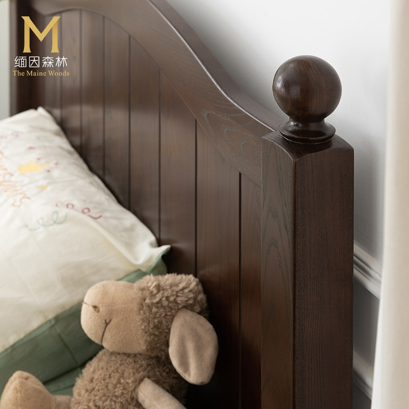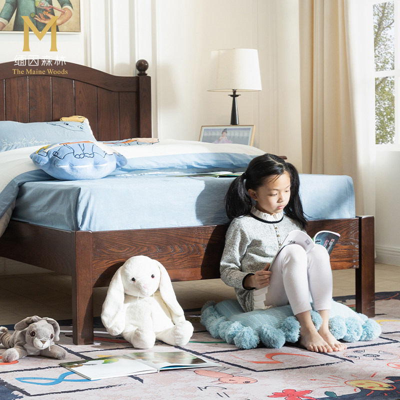 美式儿童床实木水性漆实木床1.5米女孩男孩1.35米单人床政府补贴