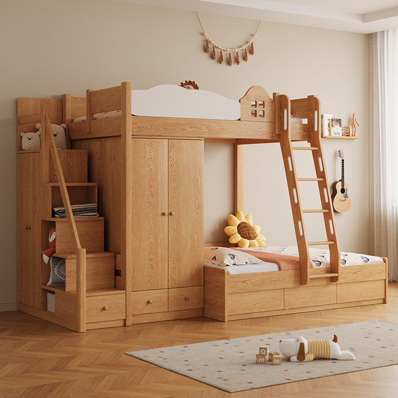 实木床橡木多功能上下床双层床儿童床子母床高低床双人床上下铺床