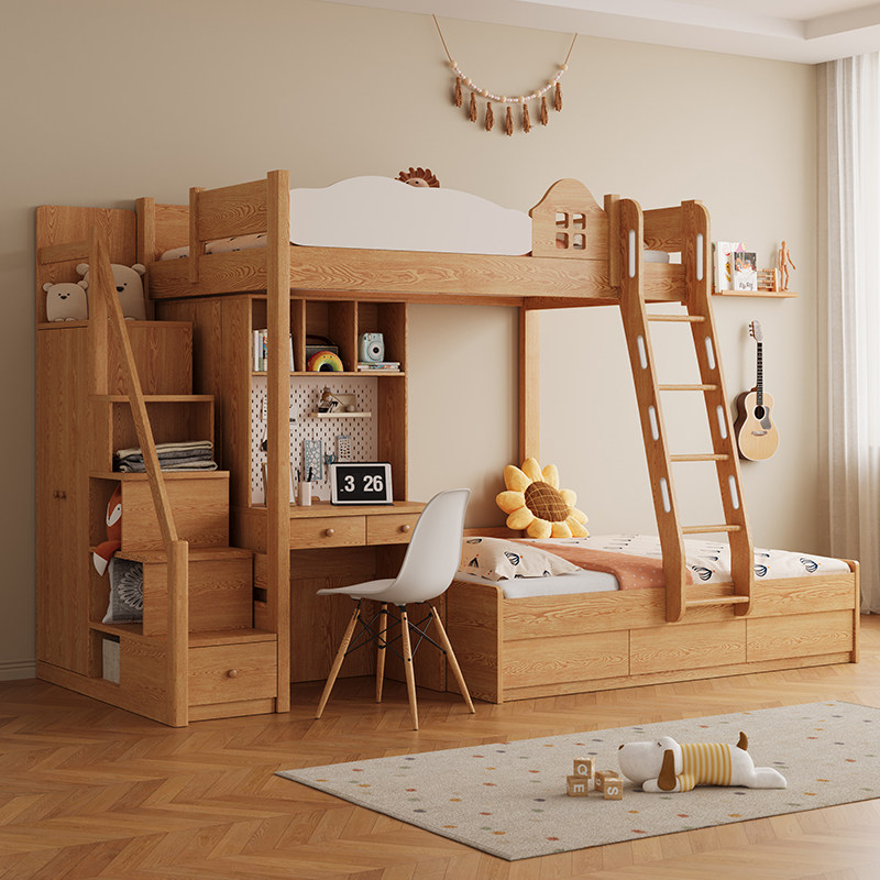 源氏木语儿童床实木上下床北欧橡木子母床成人上下铺高低床