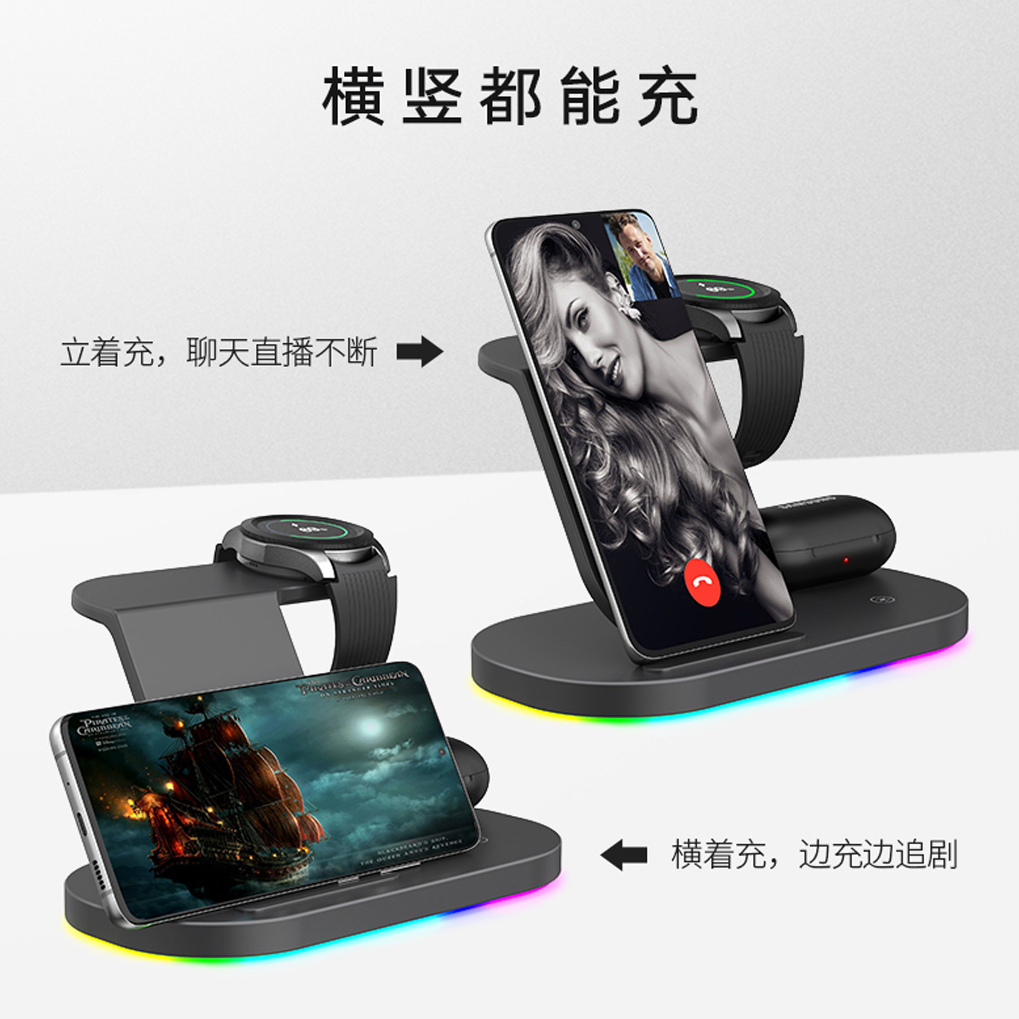 三合一无线充电器适用三星s26ultra手机s25/s24ultra快充Galaxy S25 Edge支架iWatch8/7手表耳机底座