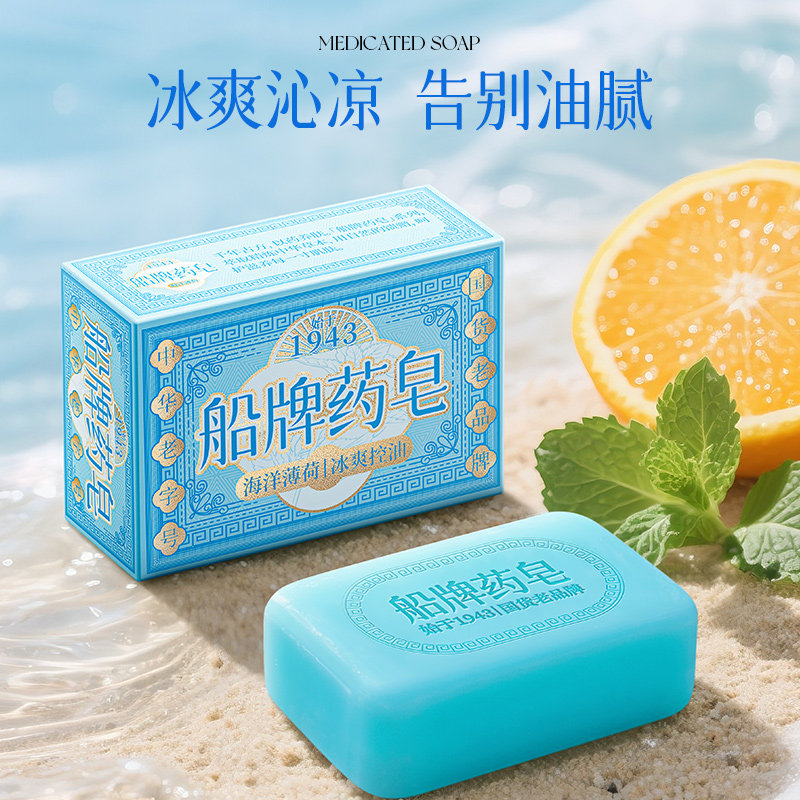 船牌海洋薄荷药皂冰爽控油洗脸香皂洗澡沐浴男士专用持久留香肥皂