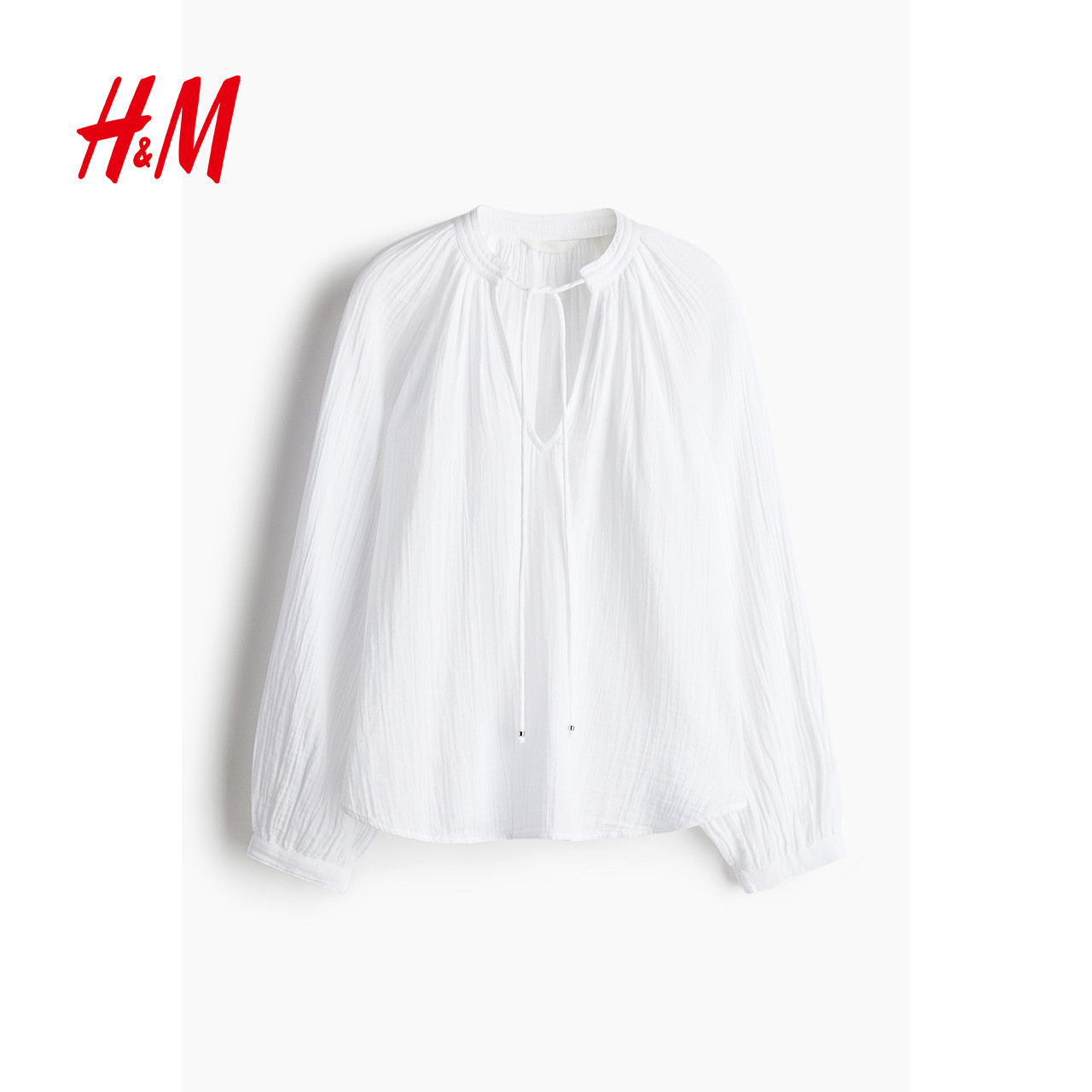 HM女装衬衫春季中式领灯笼袖棉细布宽松长袖上衣1275176