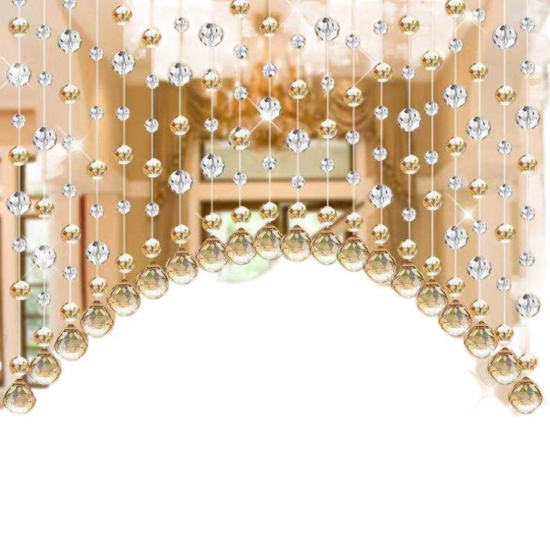 水晶珠帘玄关隔断卧室客厅过道装饰免打孔自粘成品半截新款拱形