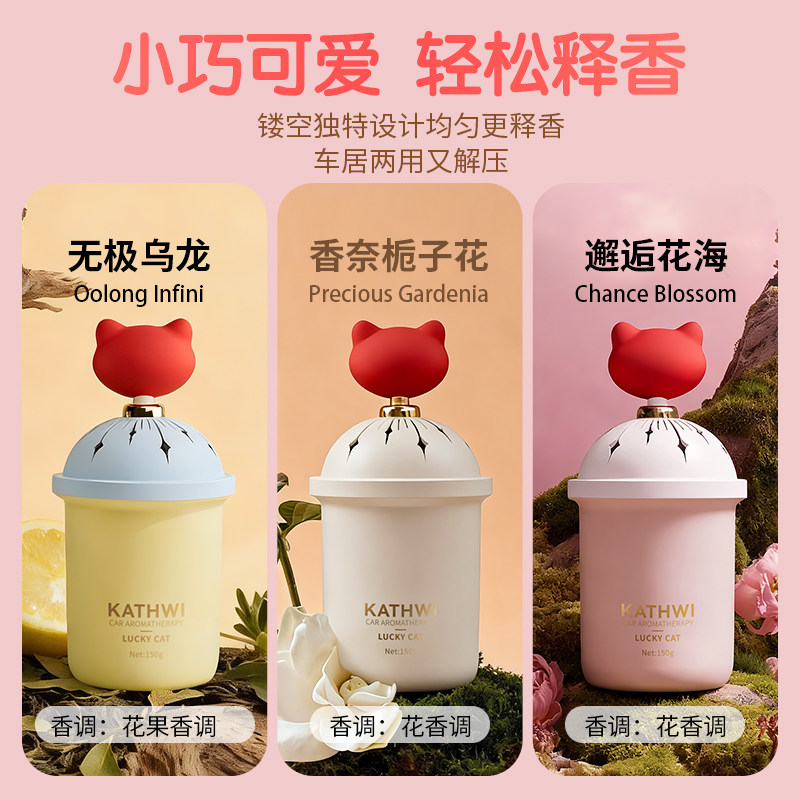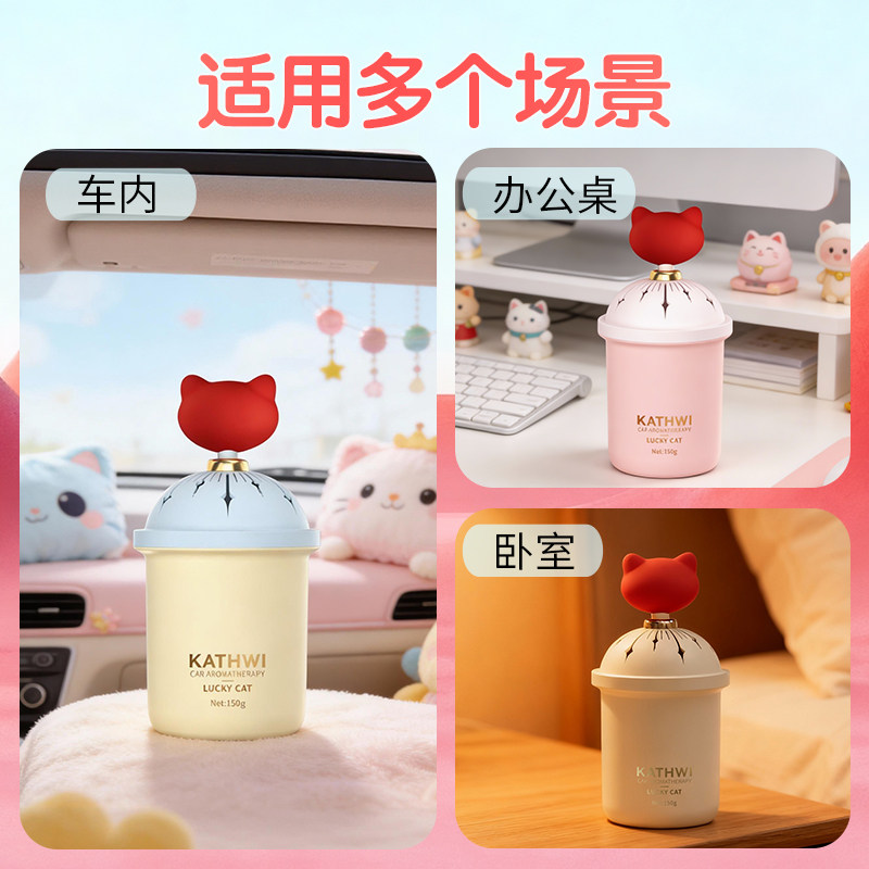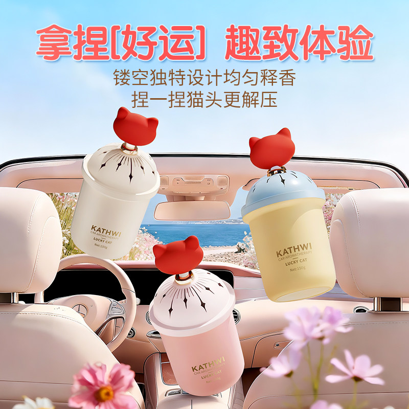 科净威车载香薰幸运猫汽车内香氛捏捏持久留香办公室除味固体香膏