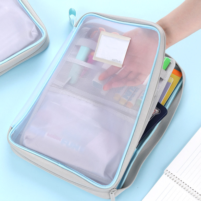 日本NATAMI奈多美美术收纳包学科课本网纱半透明可水洗试卷资料袋