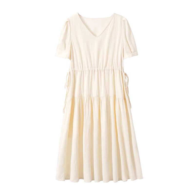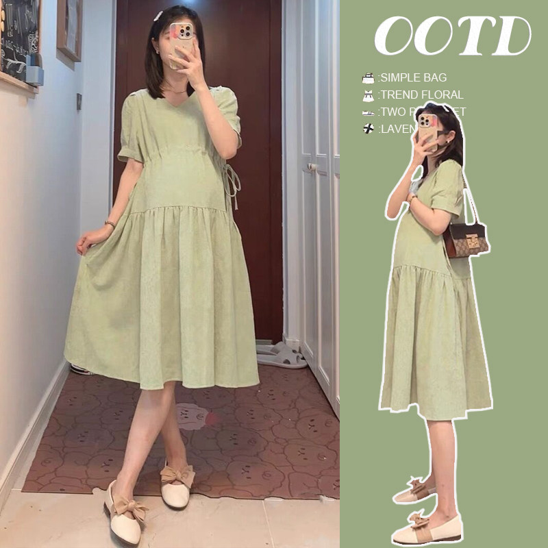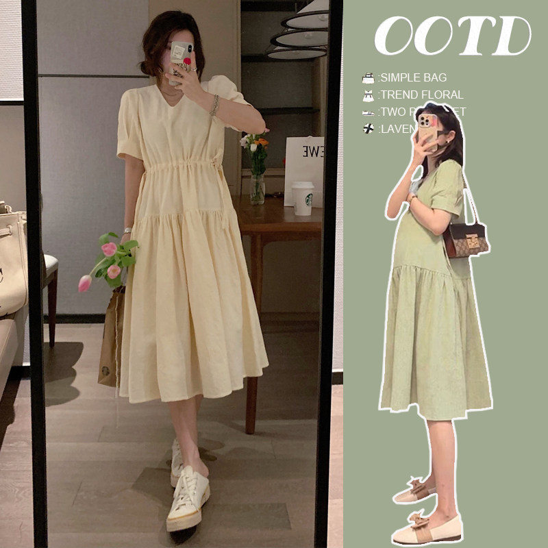 婧麒孕妇装2025新款春夏季V领收腰显瘦高级感法式穿搭孕妇连衣裙