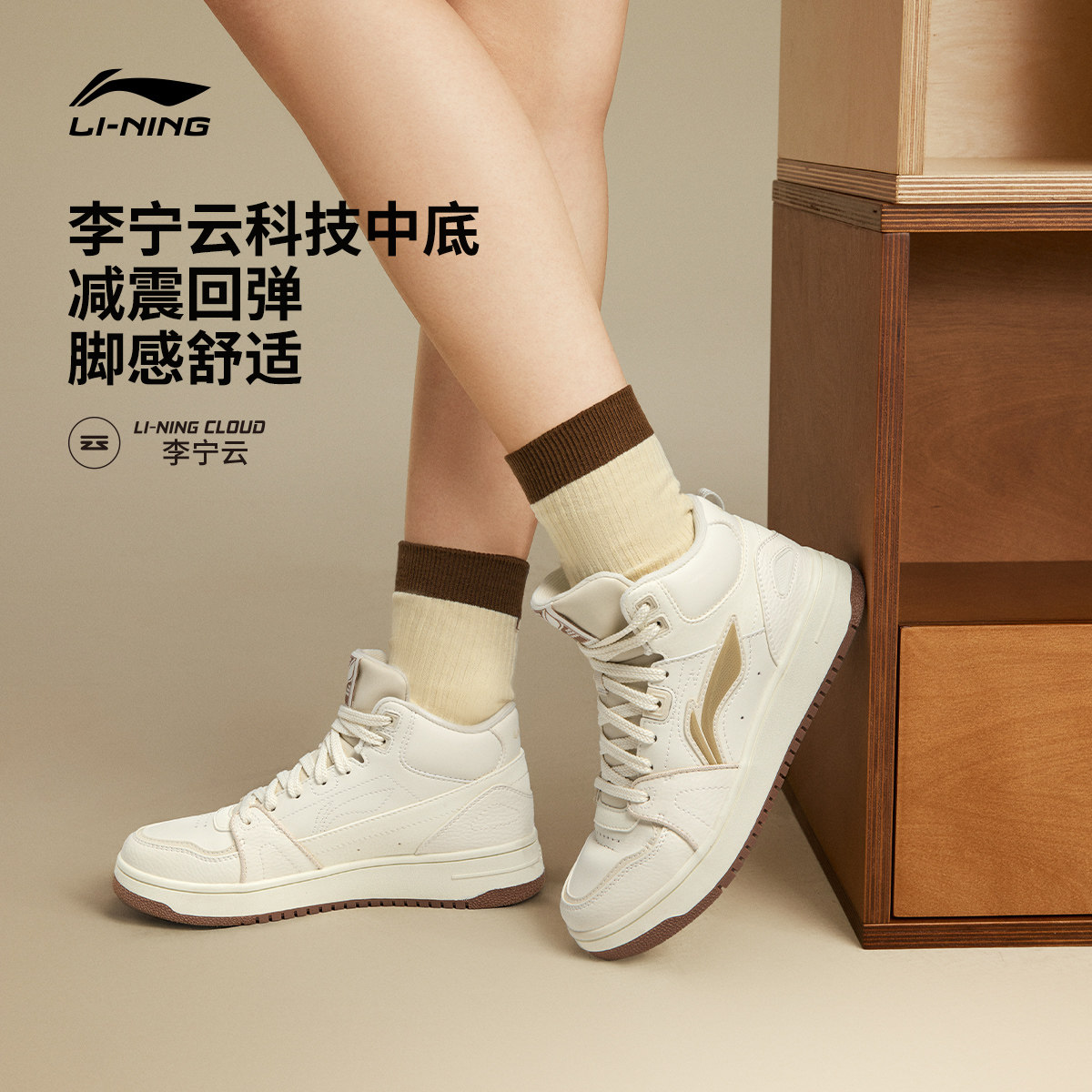 李宁小白鞋 |板鞋女鞋休闲鞋冬季轻便软底舒适百搭鞋子增高运动鞋