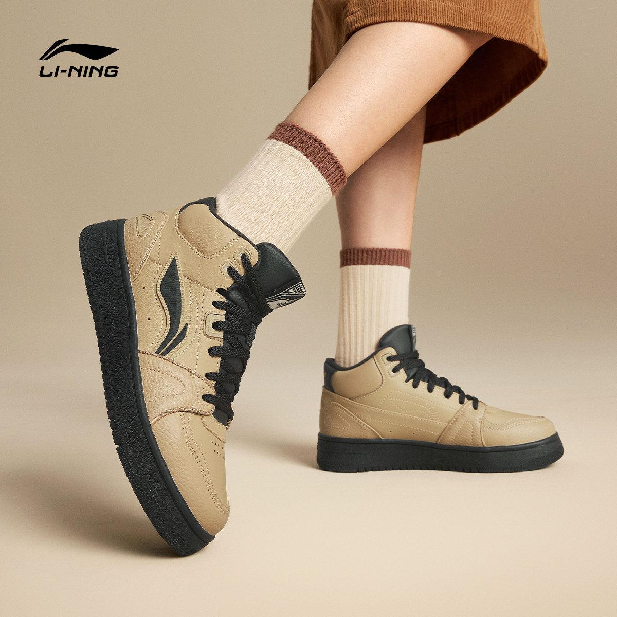李宁天迹HI高帮板鞋女鞋春季新款经典复古休闲鞋子黑白运动鞋女款