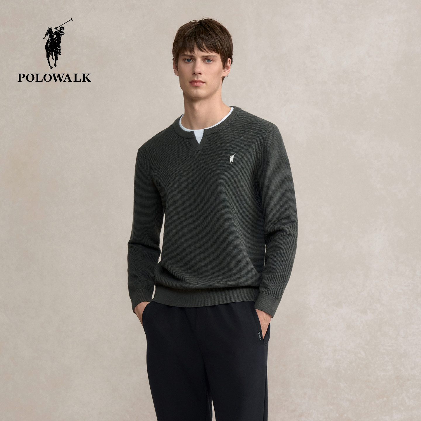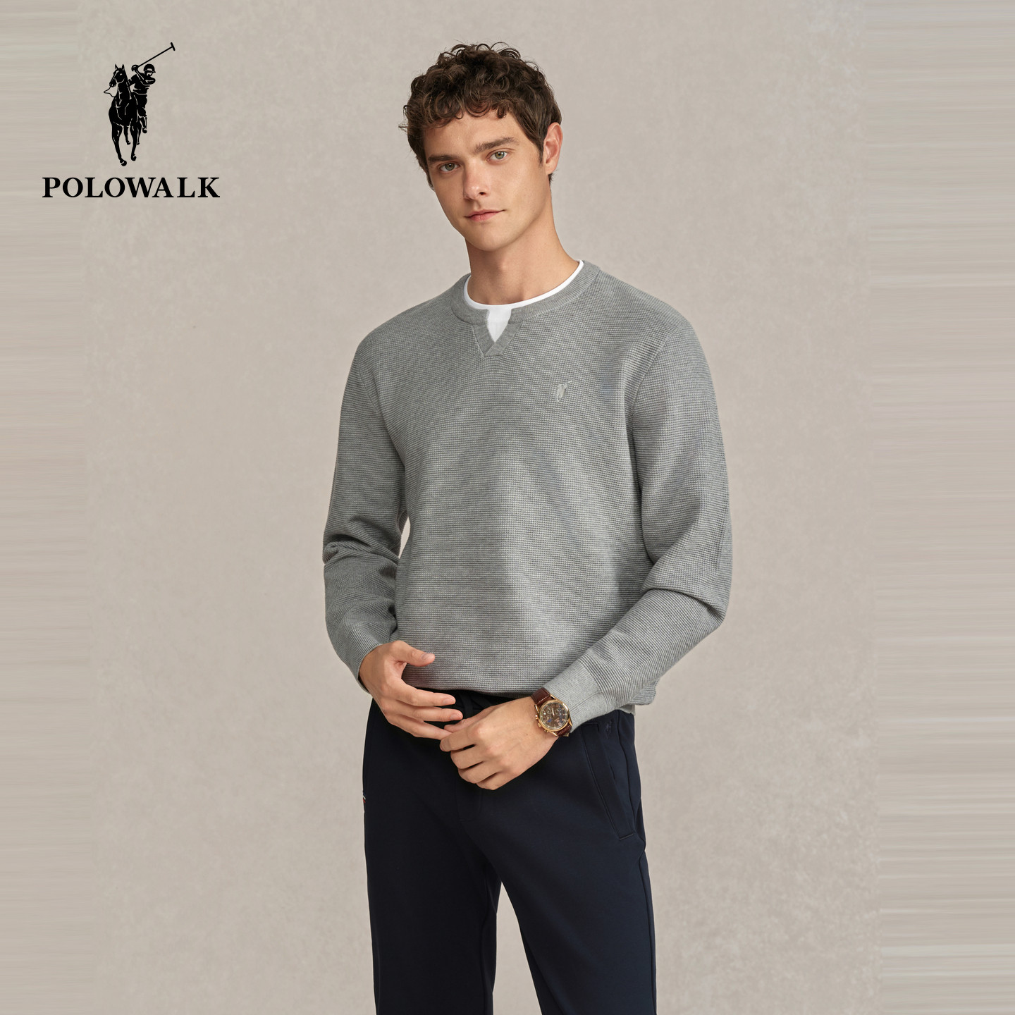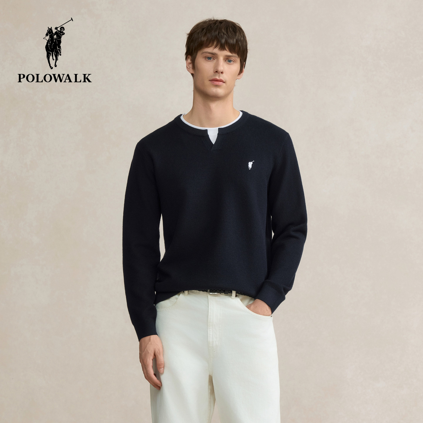 POLOWALK男式针织衫2025秋季新品撞色打底衫纯色简约圆领上衣男款