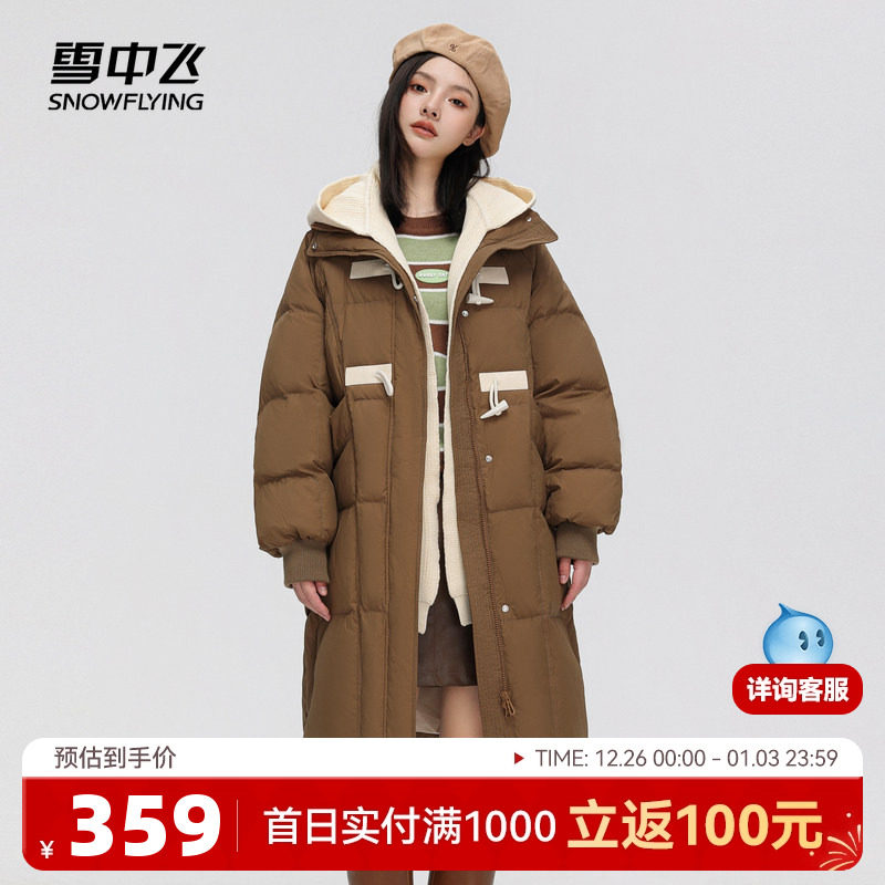 雪中飞2025秋冬新款女士中长款羽绒服可拆卸帽针织牛角扣保暖温柔