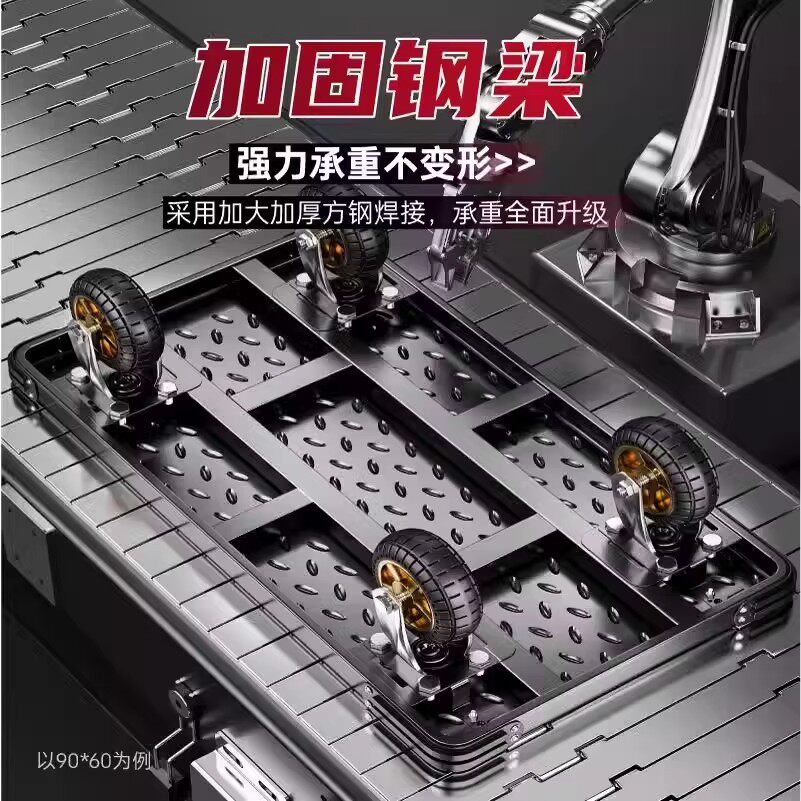 加厚钢板平板车搬运车四轮拉货车小推车工厂手推车搬运车拖车大轮