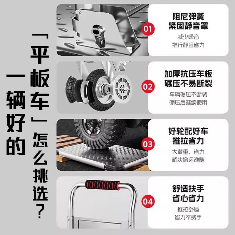 折叠小拉车搬运车手推车家用快递平板车手拉车小推车拉货静音重型