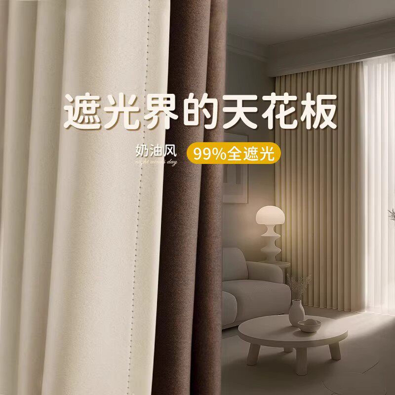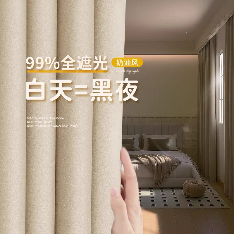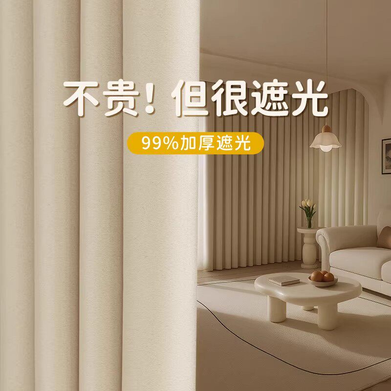 卧室窗帘遮光2026新款雪尼尔奶油风客厅轻奢隔热防晒遮阳隔音阳台