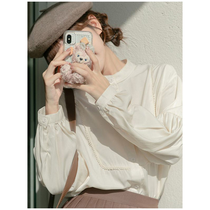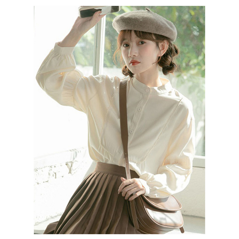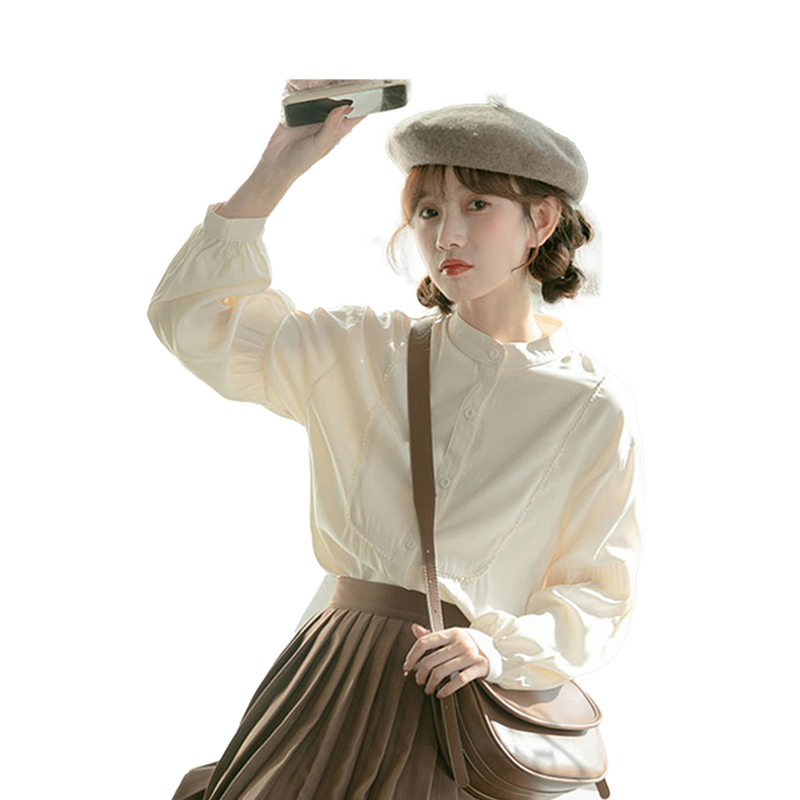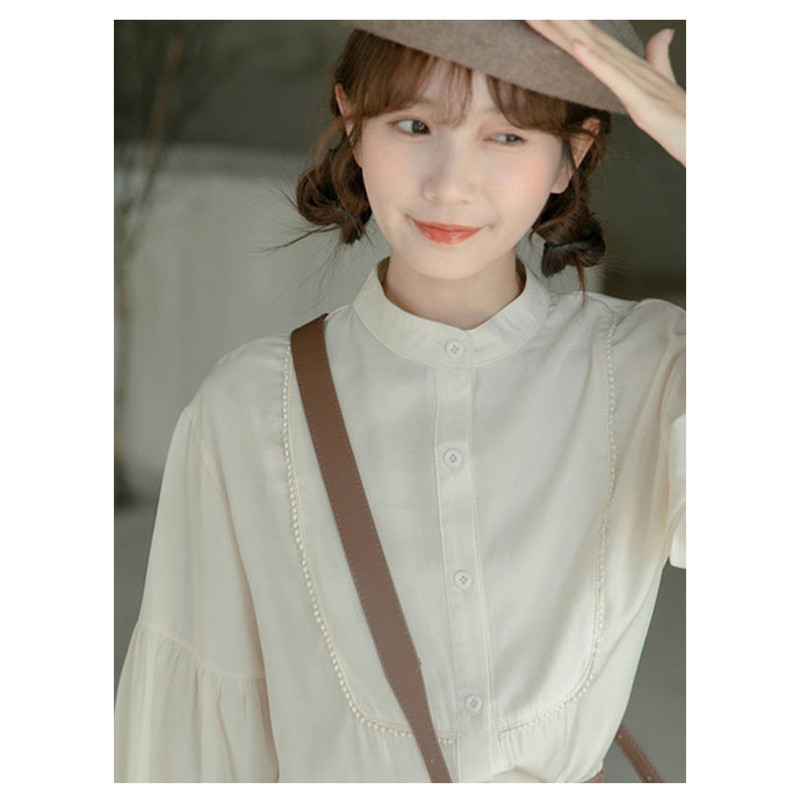 LE真维斯女装长袖衬衫 2025春季新款复古文艺设计感长袖立领衬衫