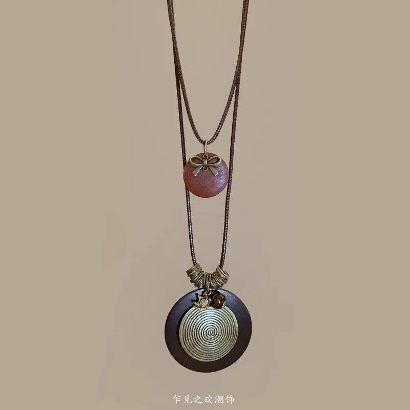 新中式禅意古铜羽毛项链女波西米亚民族风双层叠戴长款毛衣链配饰