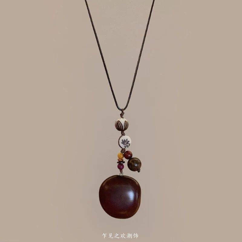 现货橡果森系植物干果毛衣链长款风配饰男女手工编织棉麻服饰项链