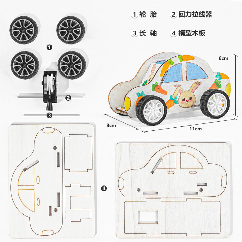 拉线回力小车 幼儿园小学科技小制作手工DIY科学实验趣味游戏推荐