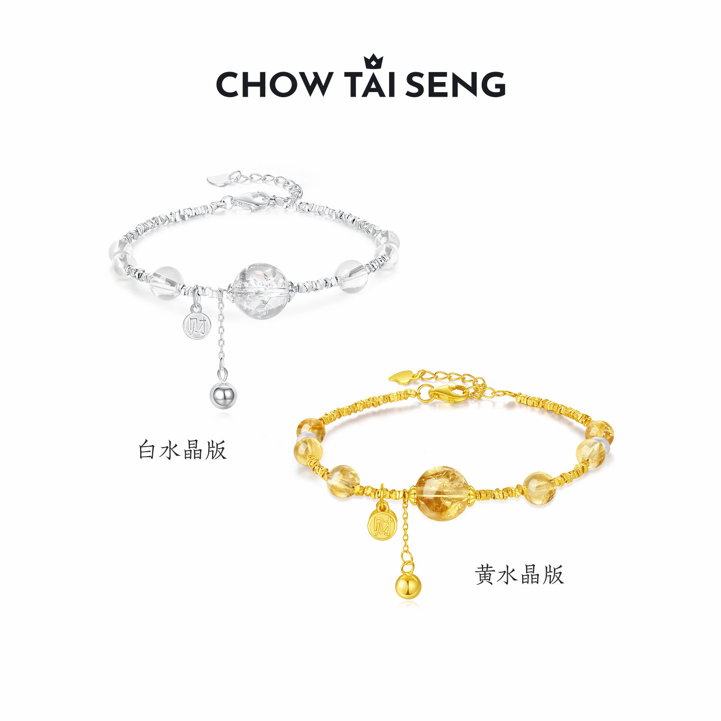 周大生白水晶碎银子手链女S925银高级感本命年首饰送女友生日礼物