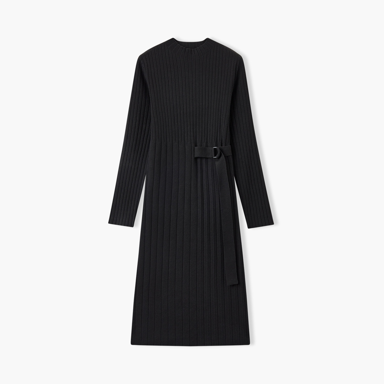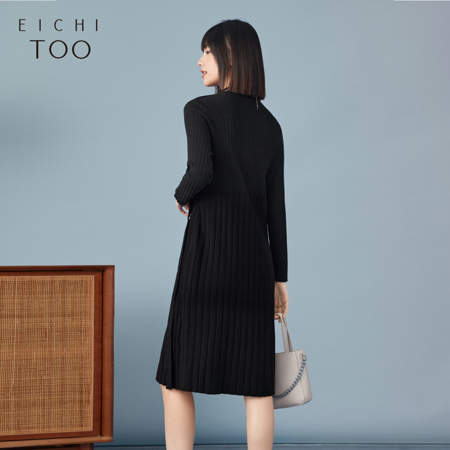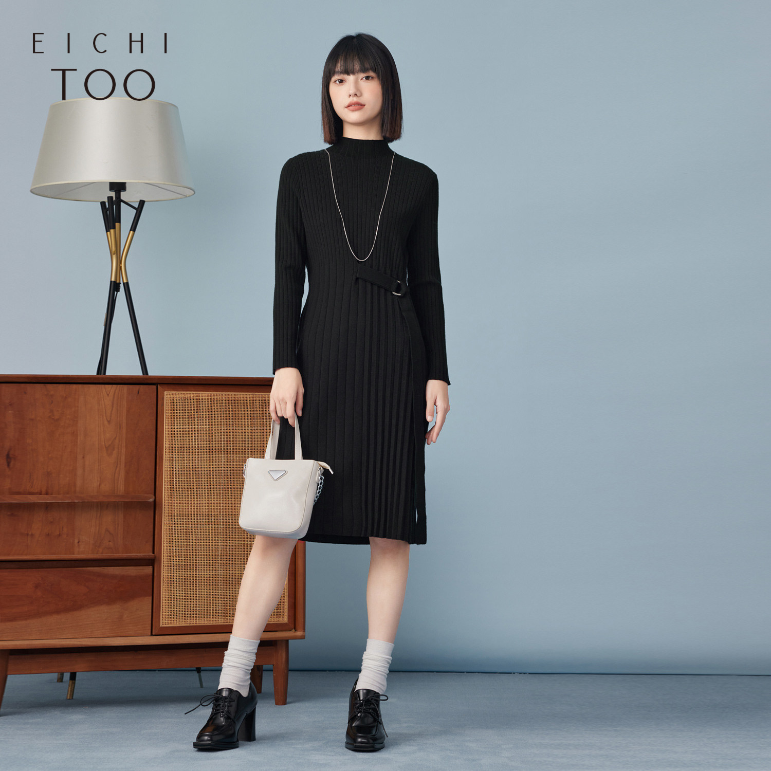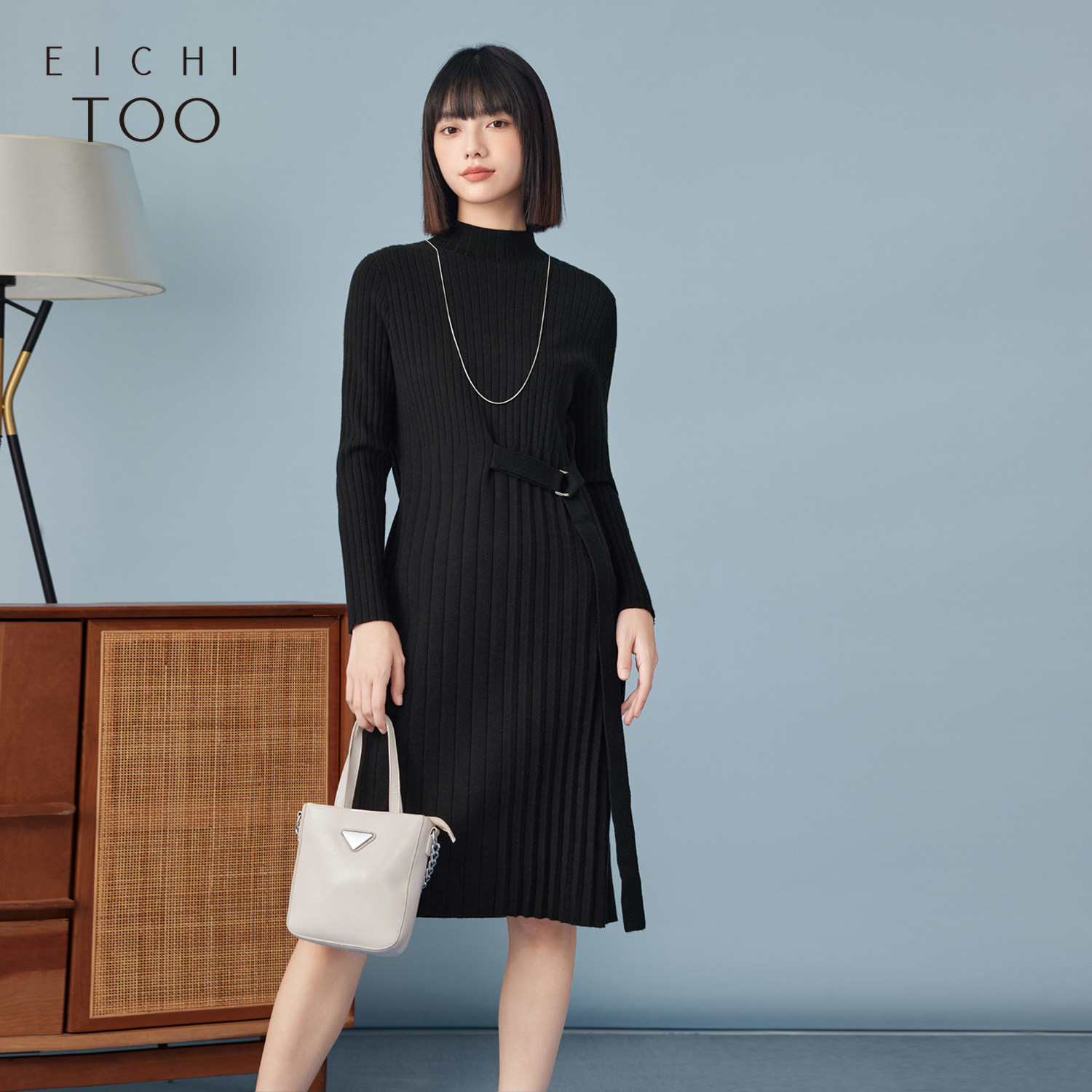 爱居兔冬季新款经典黑色通勤时尚针织衫连衣裙