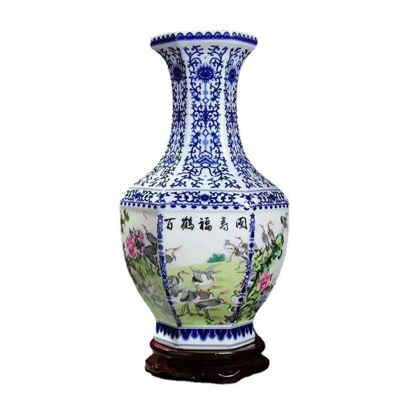 景德镇青花瓷粉彩工艺品仿古陶瓷花瓶插花器中式软装客厅家居摆件