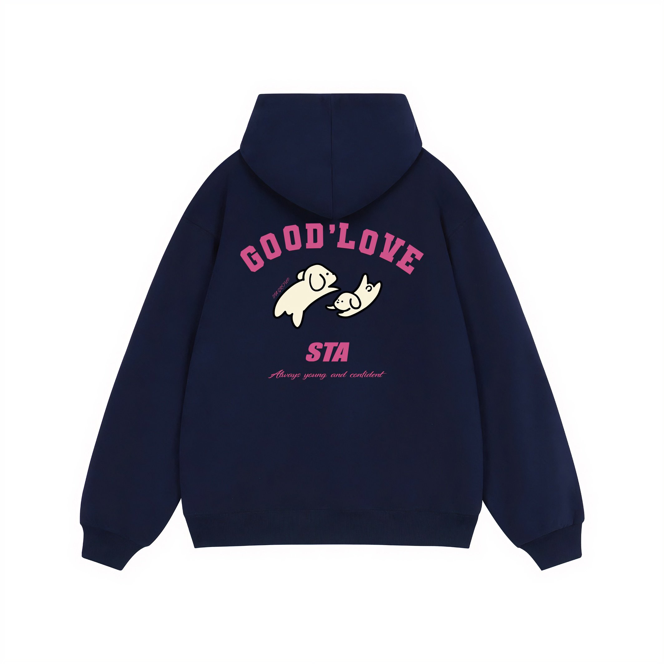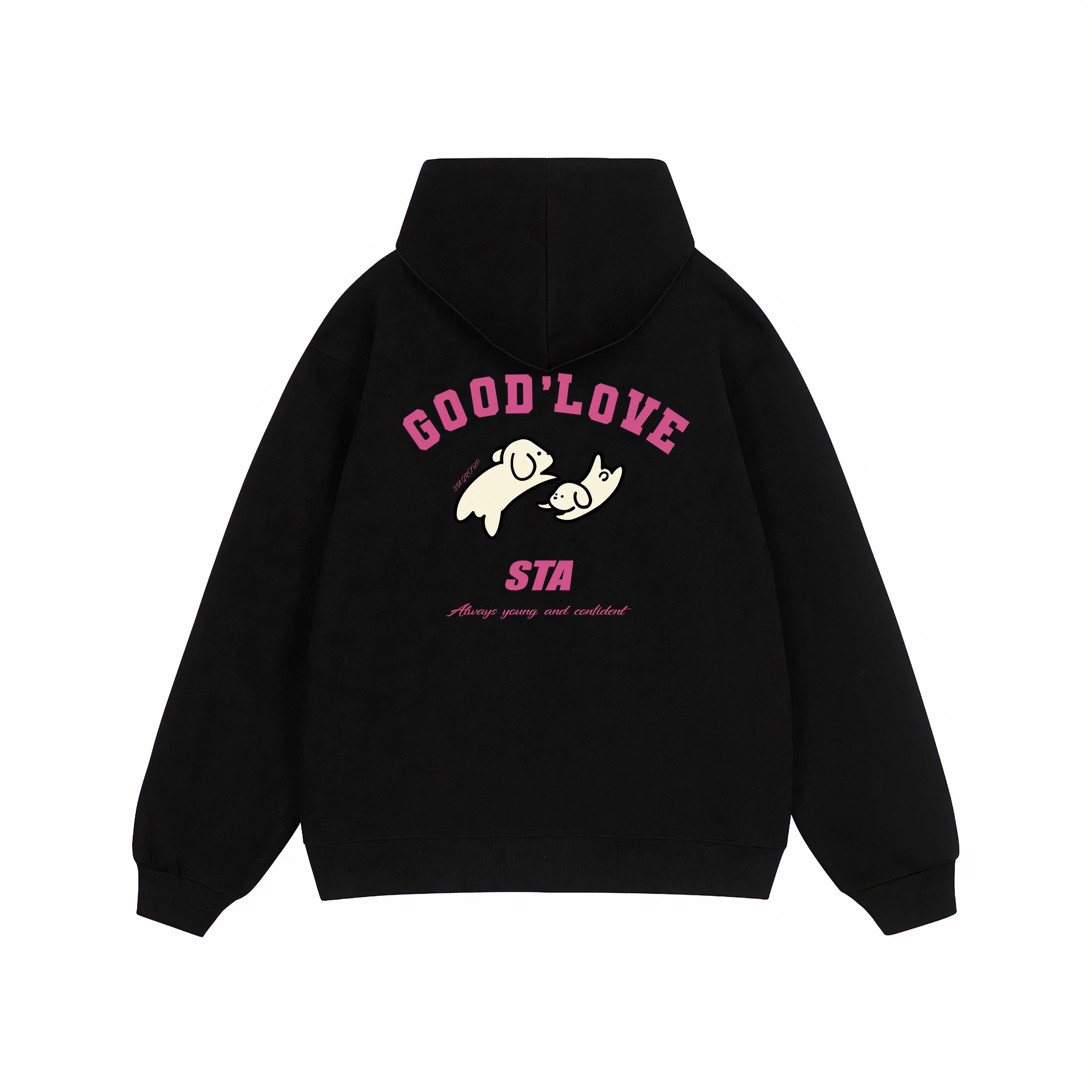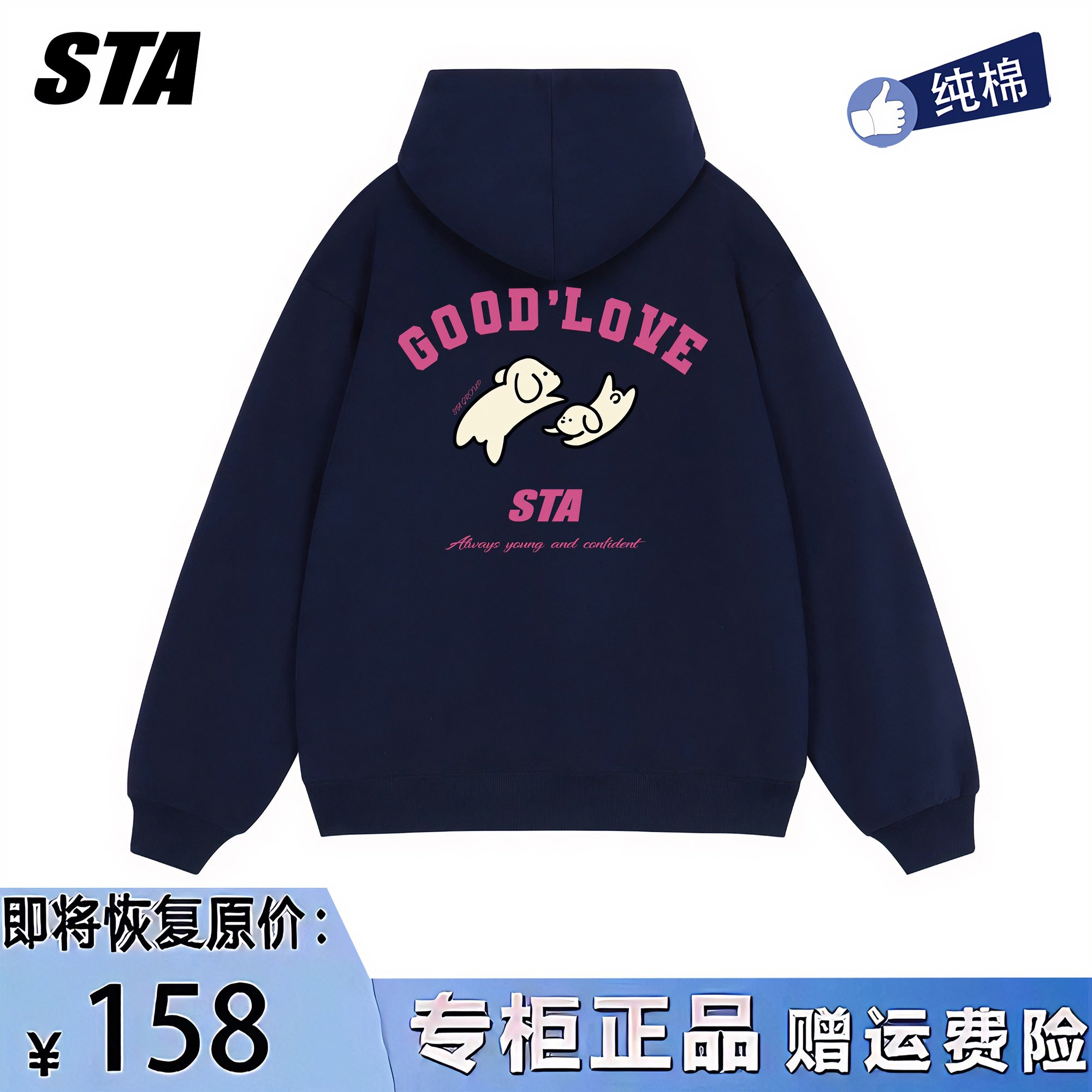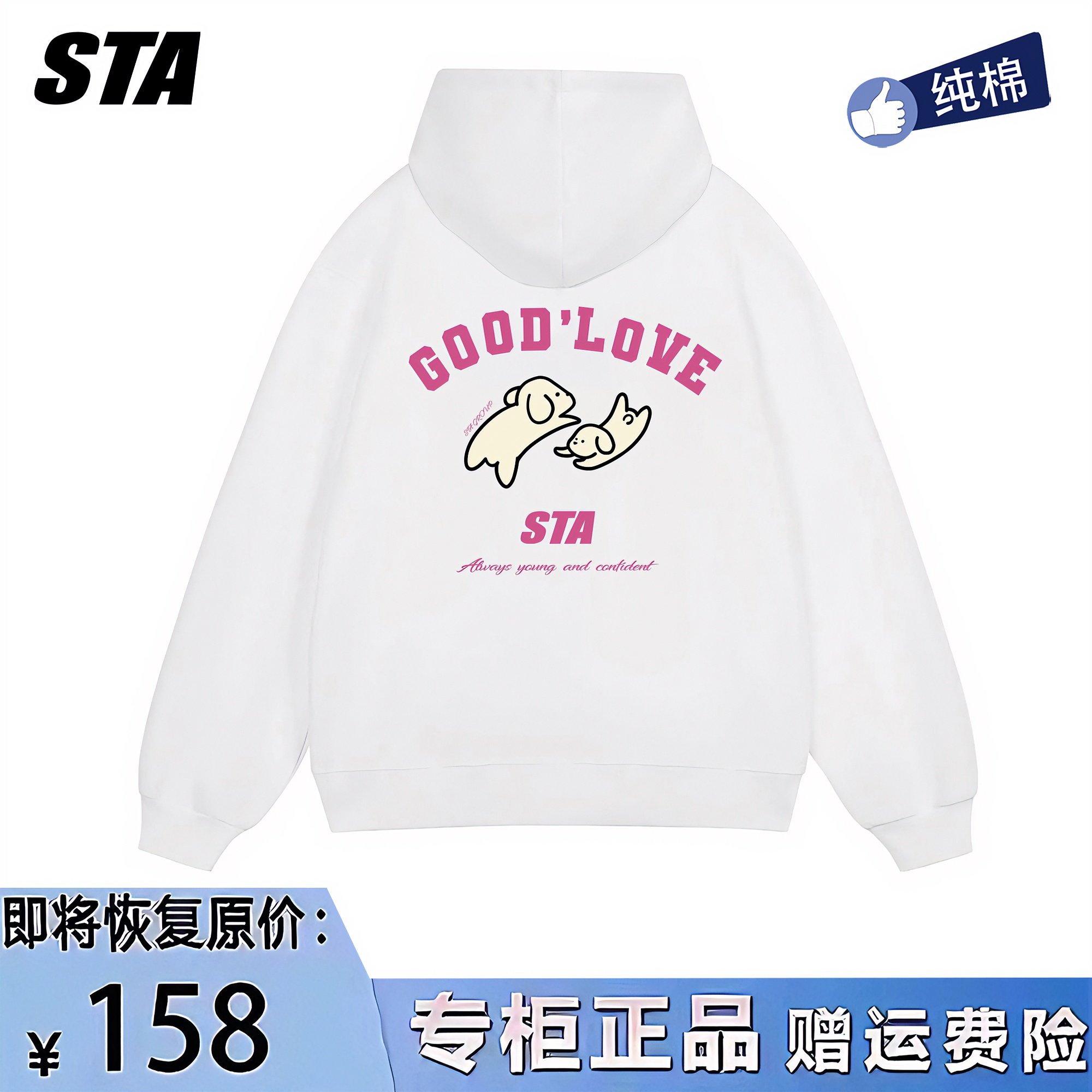STA旗舰店美式小狗印花连帽卫衣男女潮牌街头重磅纯棉情侣外套