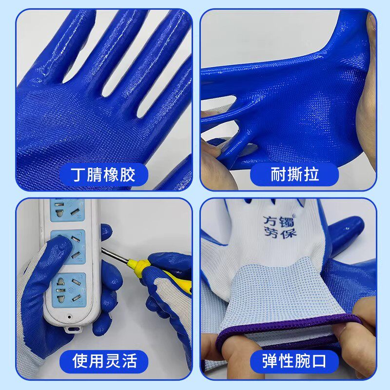 手套劳保耐磨防滑丁腈浸胶橡胶挂胶工作防水工地干活汽修建筑劳动