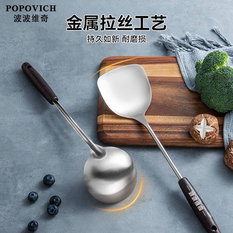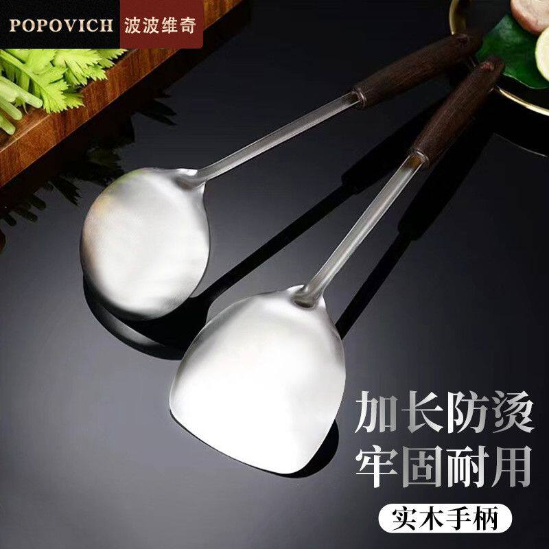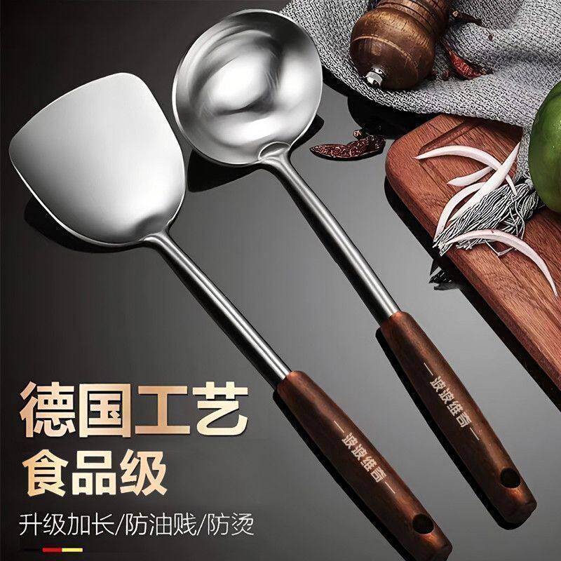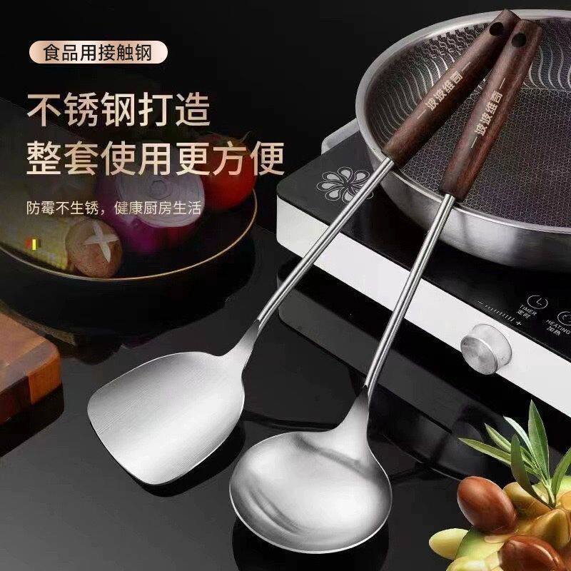 食品级不锈钢锅铲加厚炒菜铲子汤勺家用厨具木柄套装全套铲勺