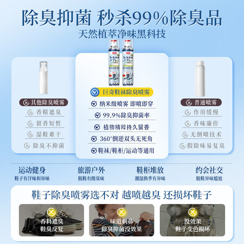 巨奇鞋子杀菌除脚气喷雾剂鞋袜球鞋鞋柜防臭抑菌去异味神器防臭剂