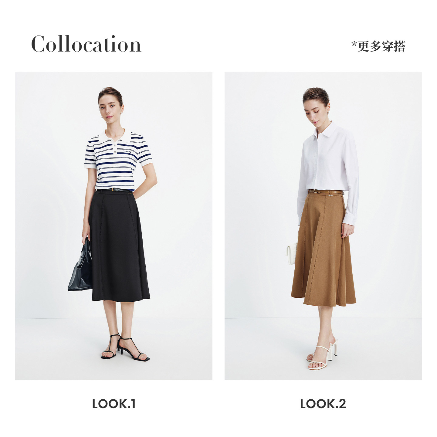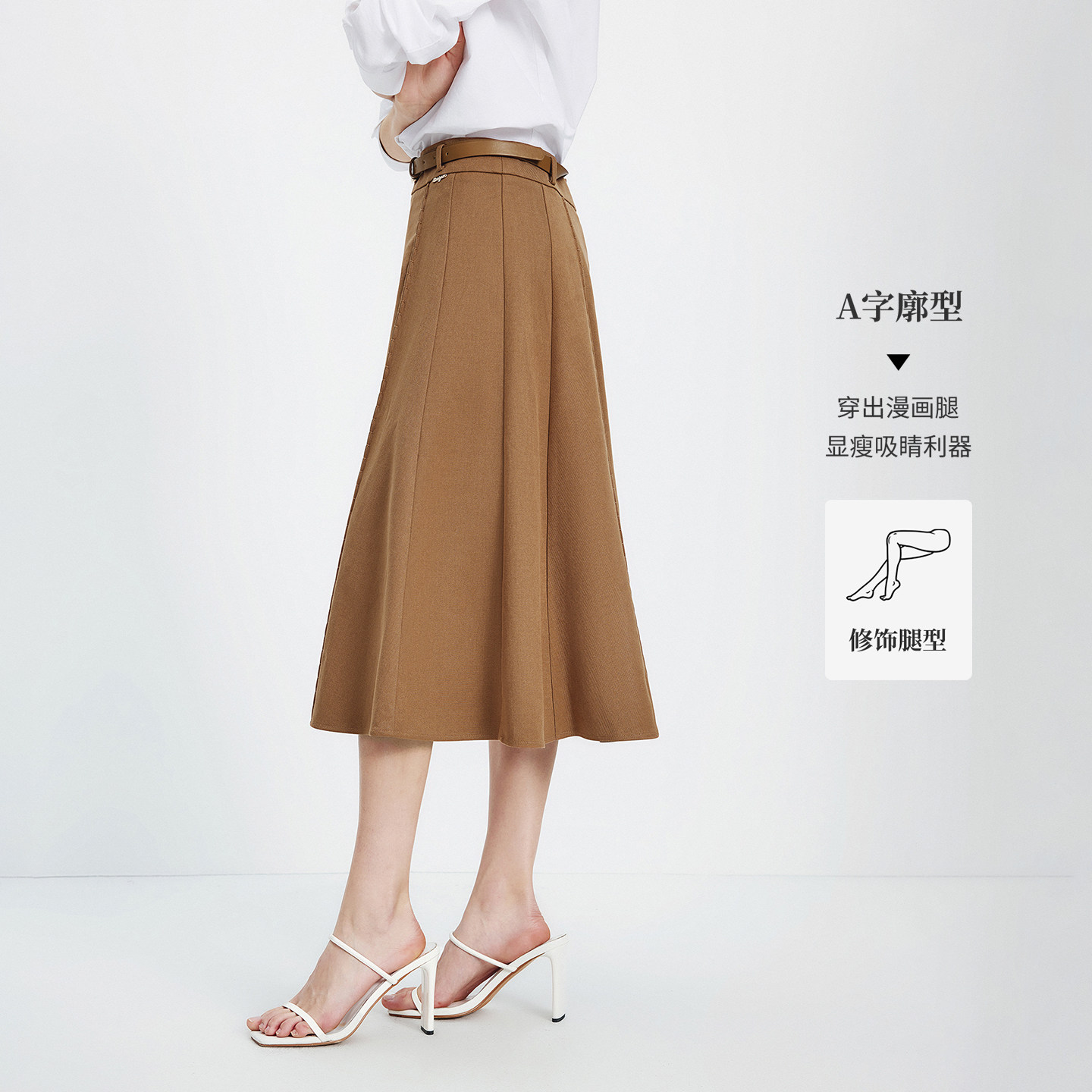 [赠腰带]Navigare意大利小帆船高腰半身裙女秋季新款中长款A字裙