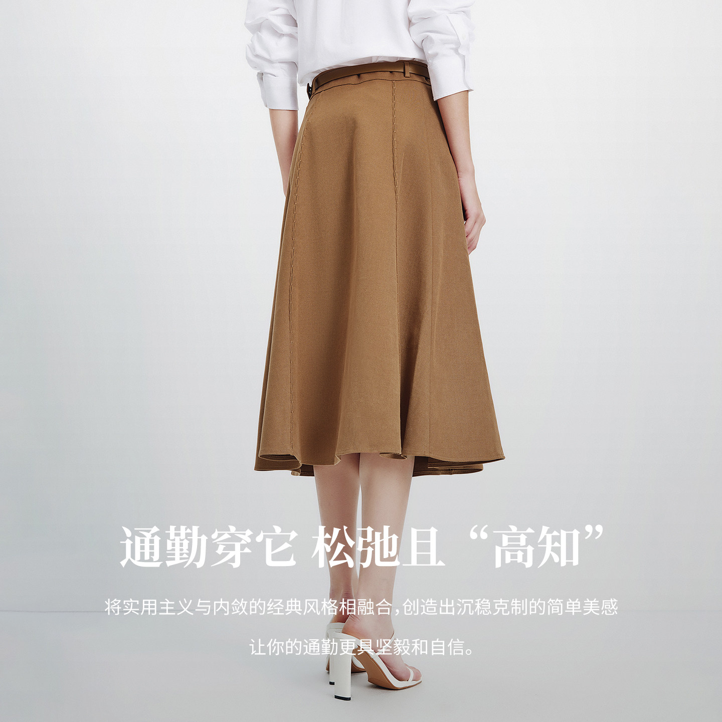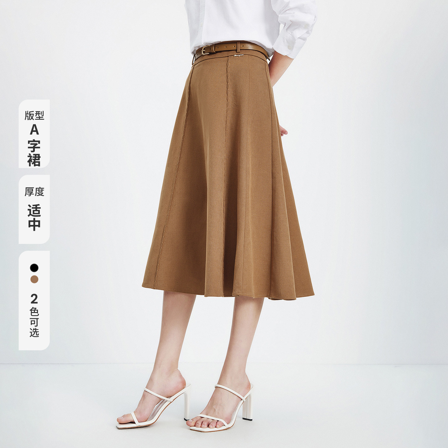 商场同款森马半身裙女磨毛纯棉长裙2025秋新款纯色伞裙百搭20002