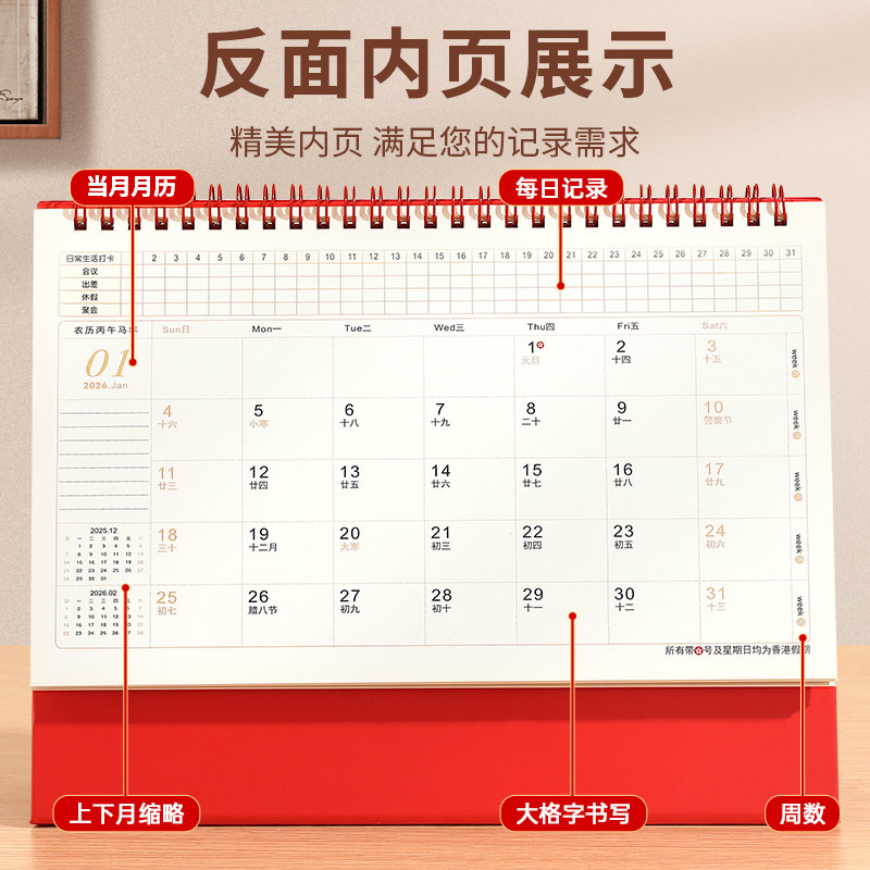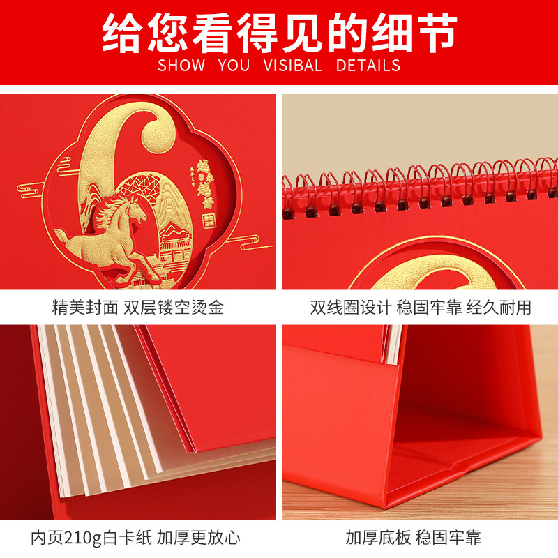 2026年新款荧光红双层镂空台历商务办公桌面摆件马年简约打卡备忘录翻页月历定制可印logo新年日历订制送客户
