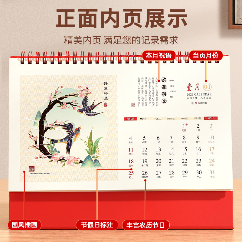 台历2026年新款日历定制logo创意简约小清新韩式办公年历个性中国风桌面摆件商务工作记事计划本订制广告月历