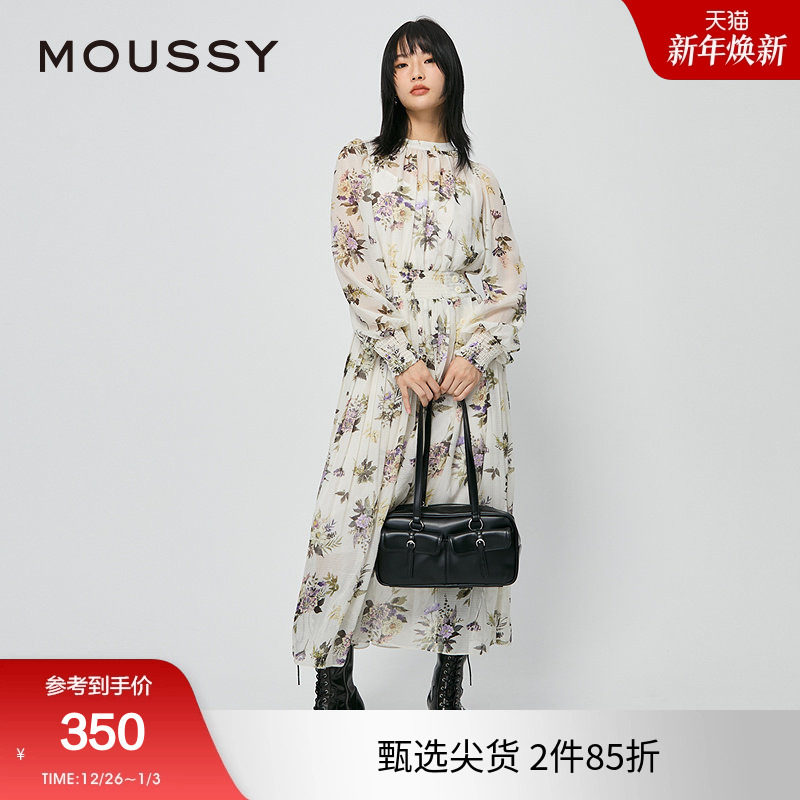 moussy 2024秋季新品新中式艺术印花茶歇裙连衣裙女028HAA30-1921