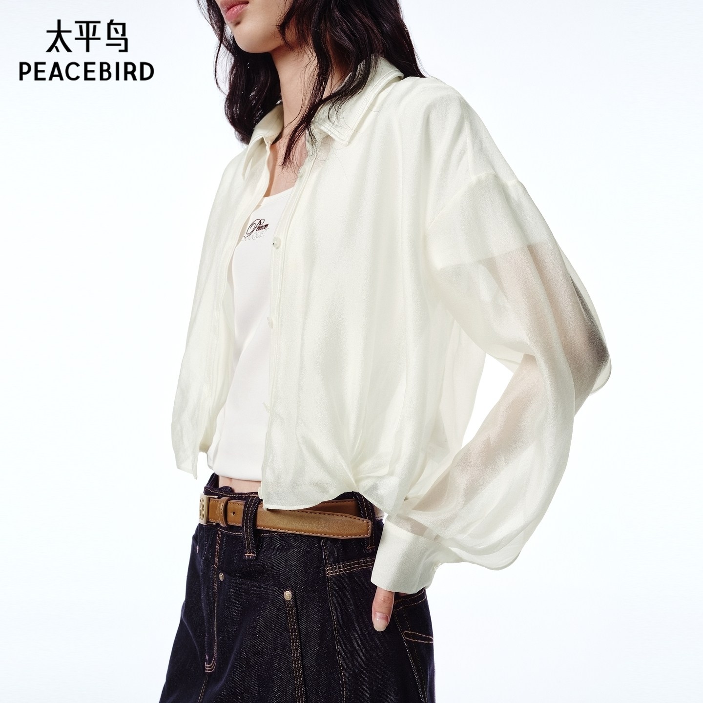 【商场同款】太平鸟女装2025年夏季新款白色廓形衬衫A1CAF2402