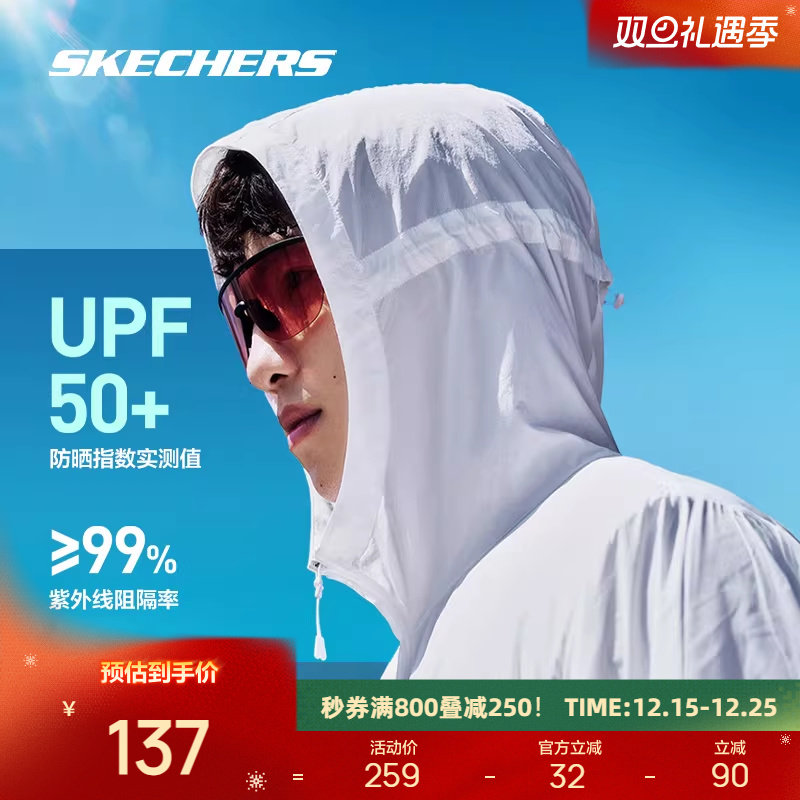 斯凯奇御光防晒衣男女同款凉感速干舒适运动户外透气连帽外套