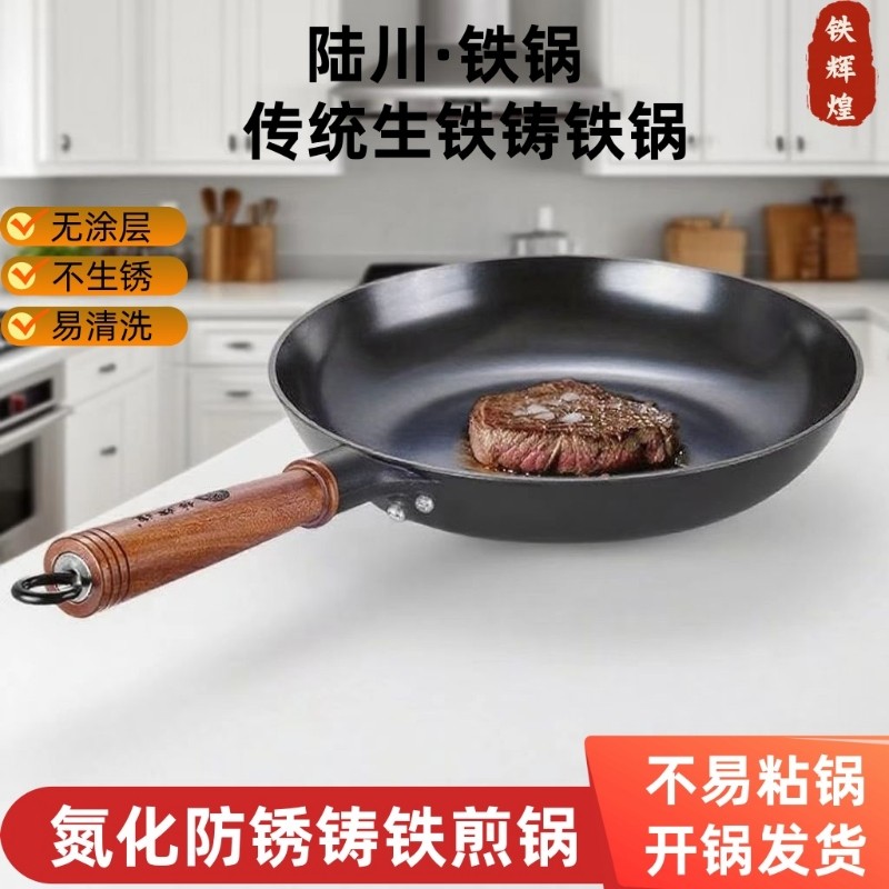 陆川铸铁锅不粘锅平底锅煎鸡蛋牛排煎锅家用炒锅电磁炉燃气灶通用