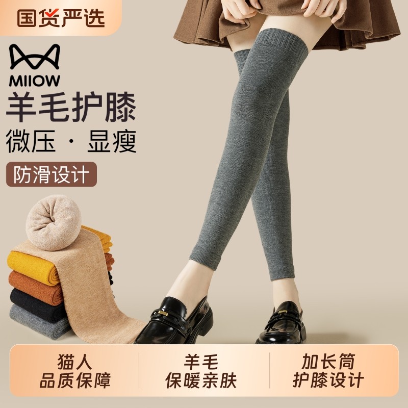 过膝袜子女秋冬羊毛长筒袜加厚保暖护膝大腿袜纯棉压力显瘦高筒袜