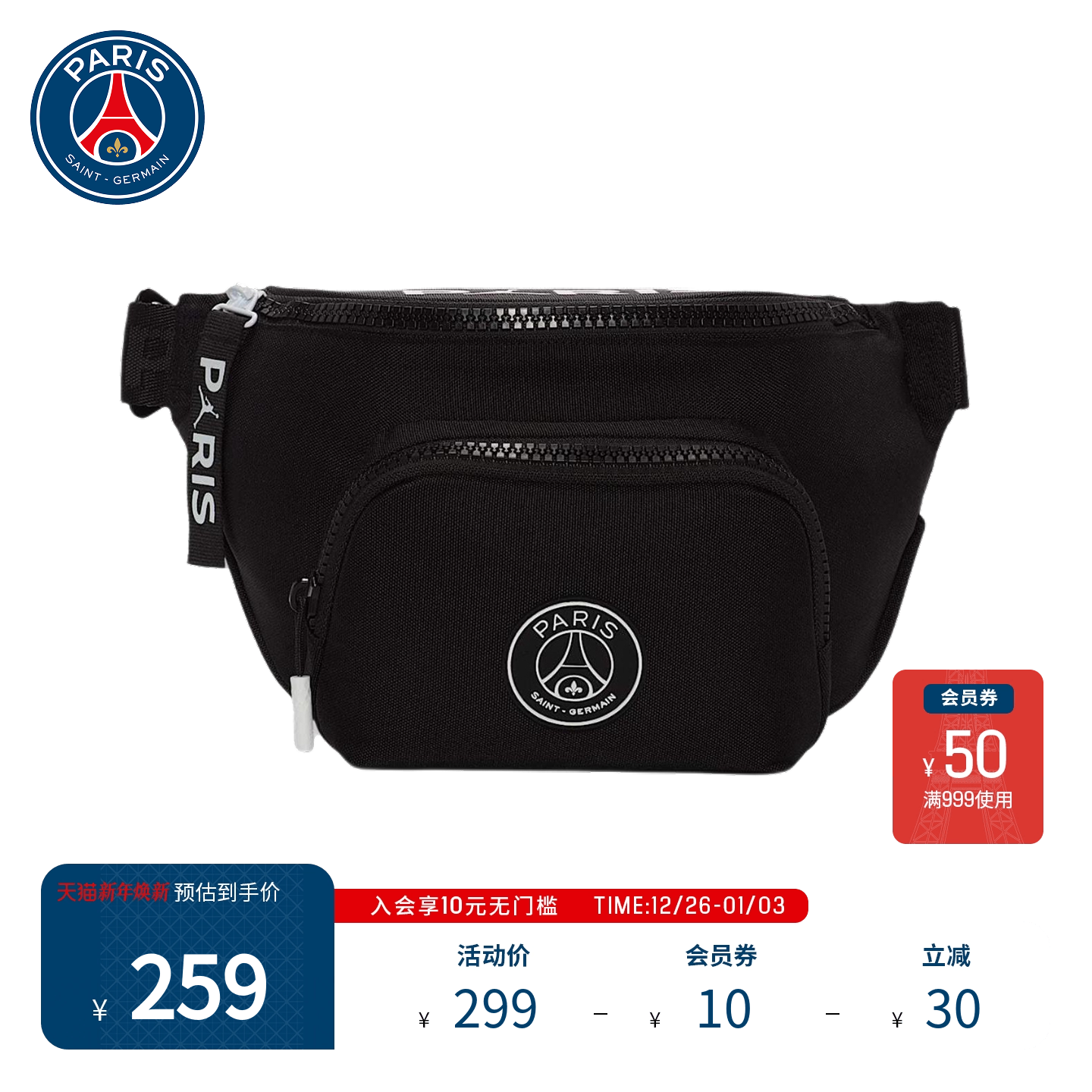 PSG X JORDAN巴黎圣日耳曼新品防泼水运动腰包胸包单肩骑行包男士