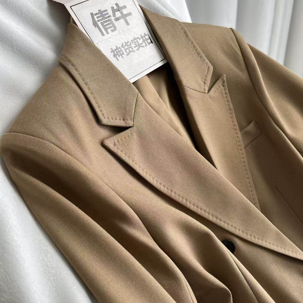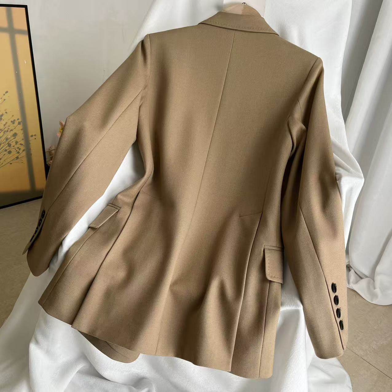灰色自制小西服女oversize小众设计感宽松学院风卡其大码西装外套