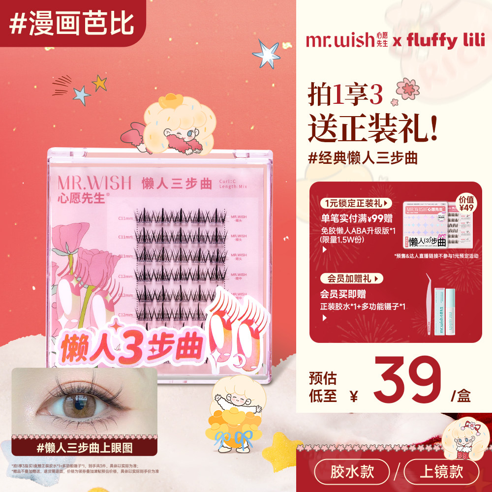 心愿先生假睫毛三步曲自然仿真防水纤长卷翘睫毛官方