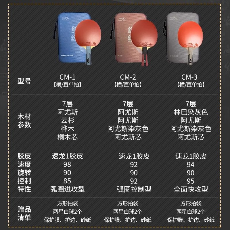双鱼纯木经典3全面快攻型乒乓球拍系列乒乓球拍双面反胶长柄短柄