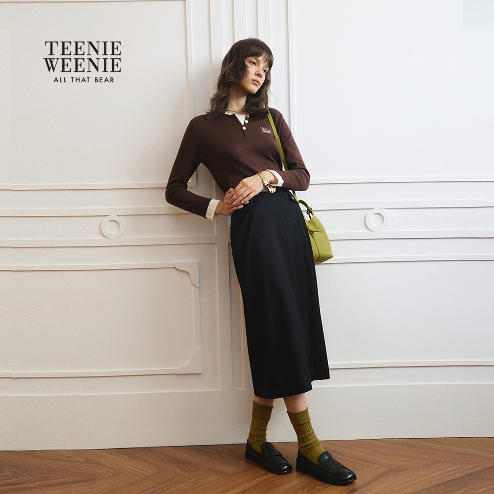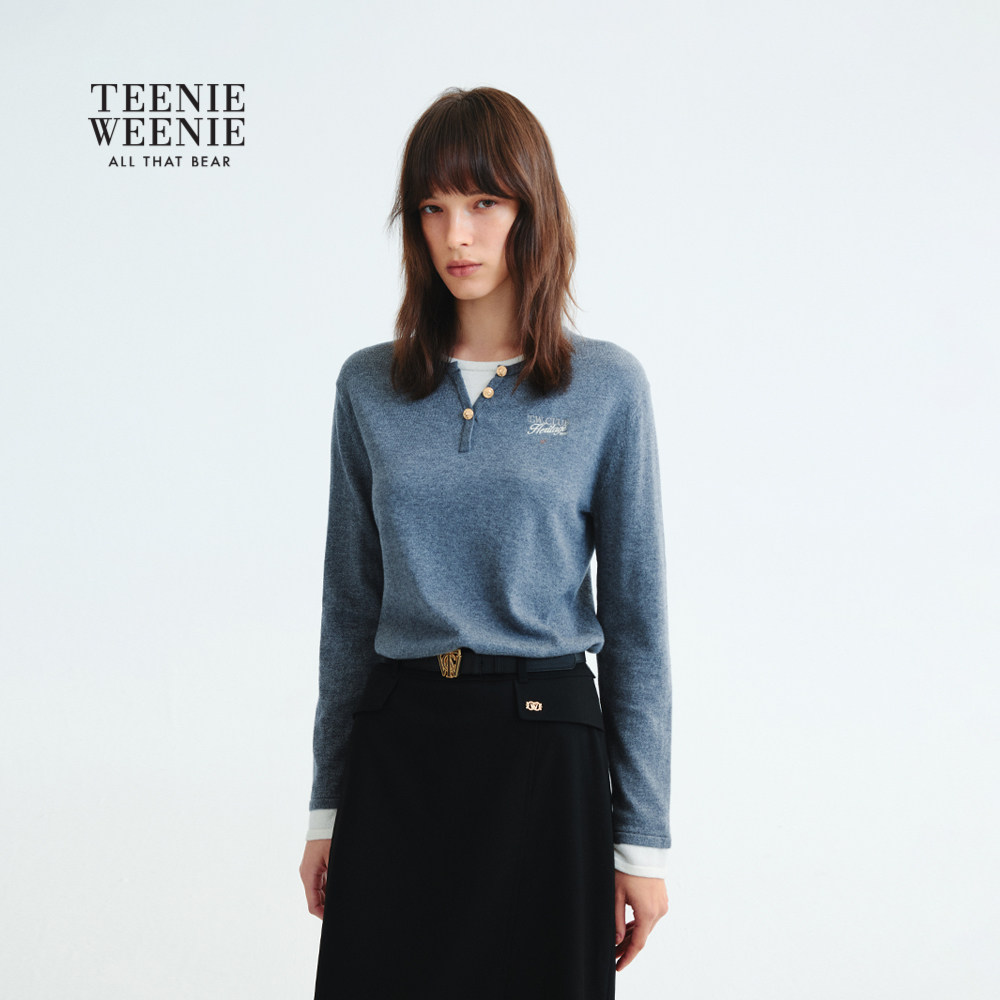 【含绵羊毛】TeenieWeenie小熊女装毛针织衫春秋款假两件撞色毛衣