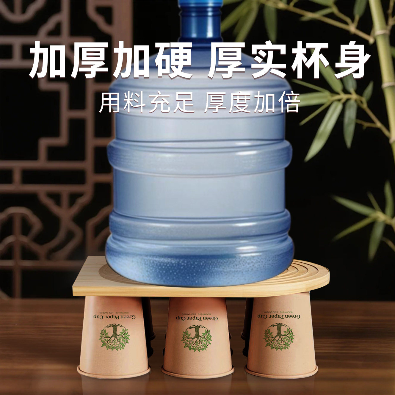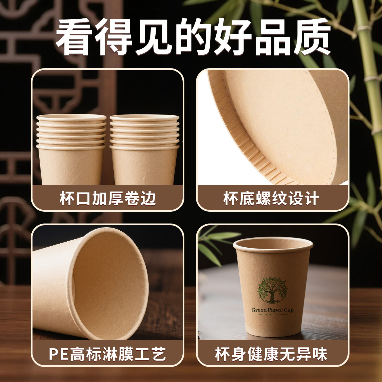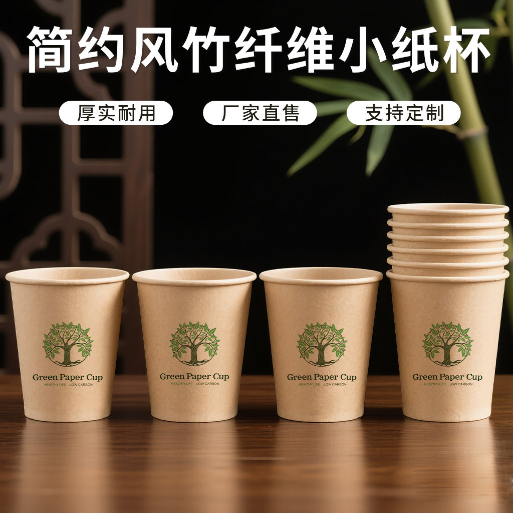 竹纤维纸杯一次性杯子加厚本色食品级商用办公室喝茶杯家用热饮杯